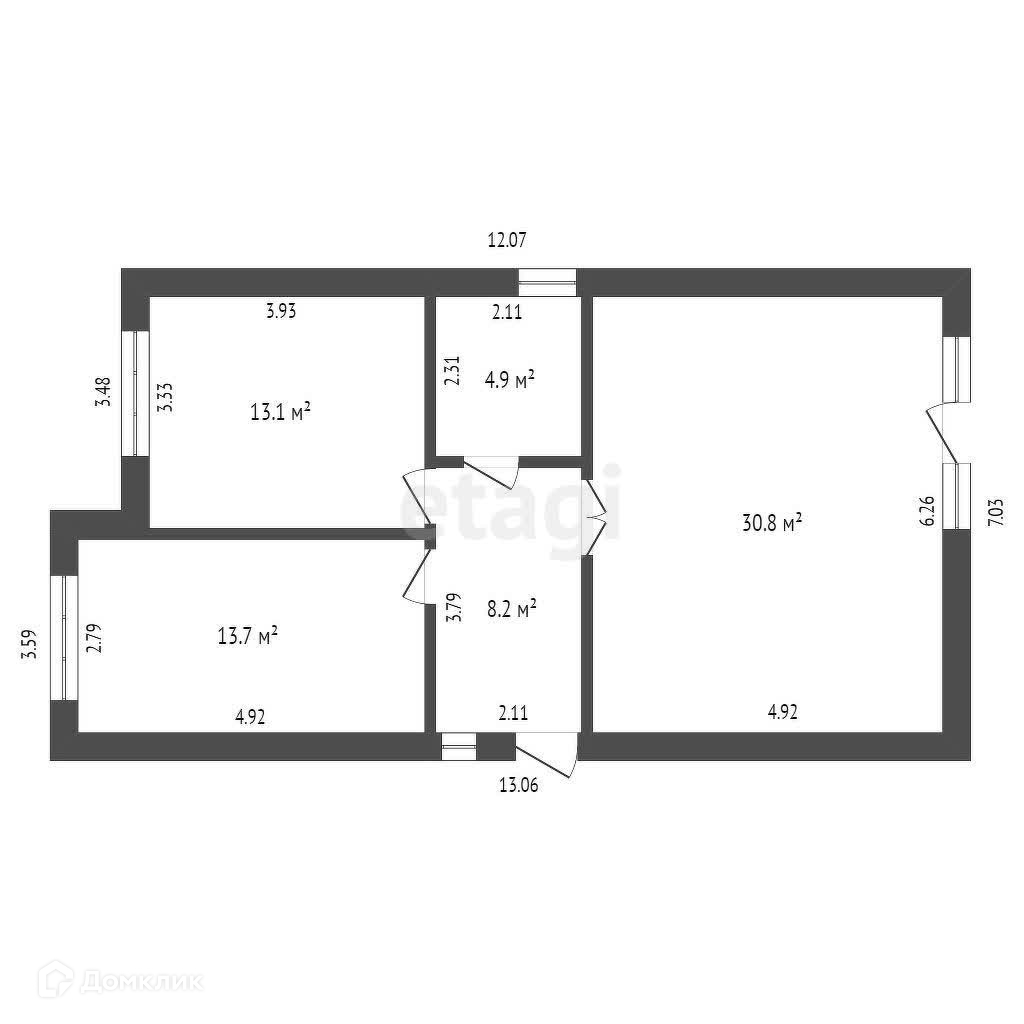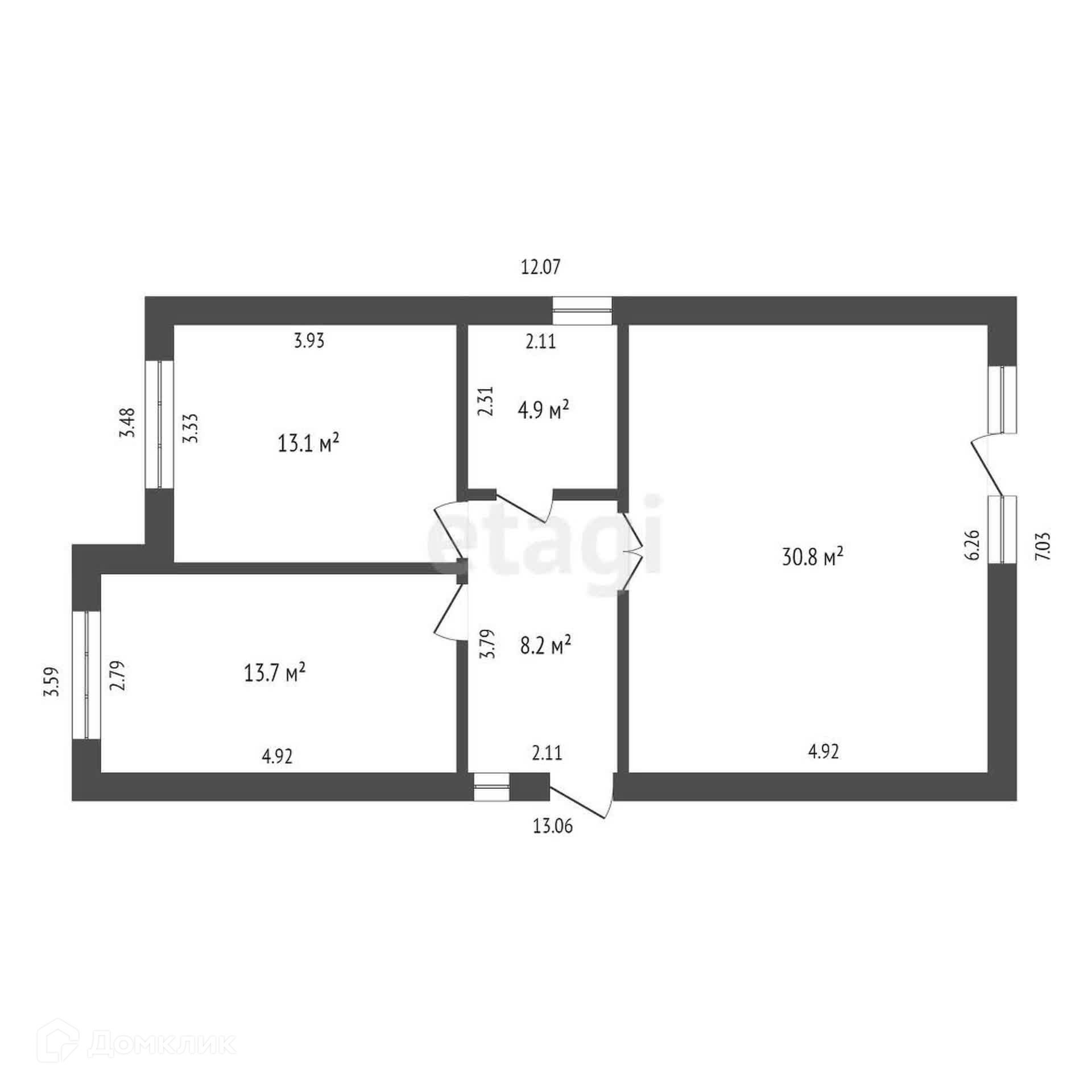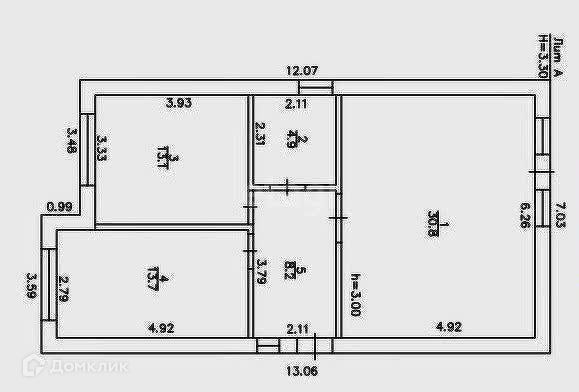 Общая площадь 70.7 м2