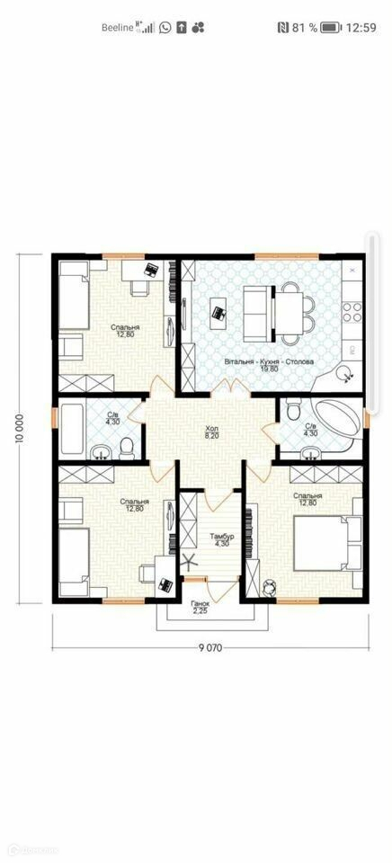 Общая площадь 90 м2