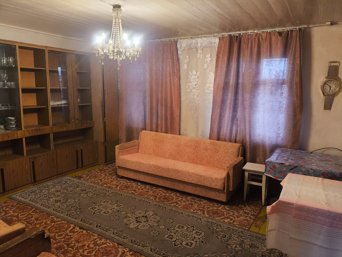 собственности.Имеются ворота для заезда автомобиля и площадка для стоянки автомобиля. На участке расположены: летняя кухня, 3 сарая, гараж, туалет на улице. В доме есть: кухня, спальня, зал, веранда, кладовка, холодильник, газовая плита, мебель. Есть погреб. Вода во дворе (скважина). Отопление печь. Газовая труба вдоль участка, планируется проведение центрального водопровода вдоль улицы. Один собственник. Удобное расположение, рядом магазины, школа, детский сад, хорошие соседи. В подарок запас дров и угля на зиму.