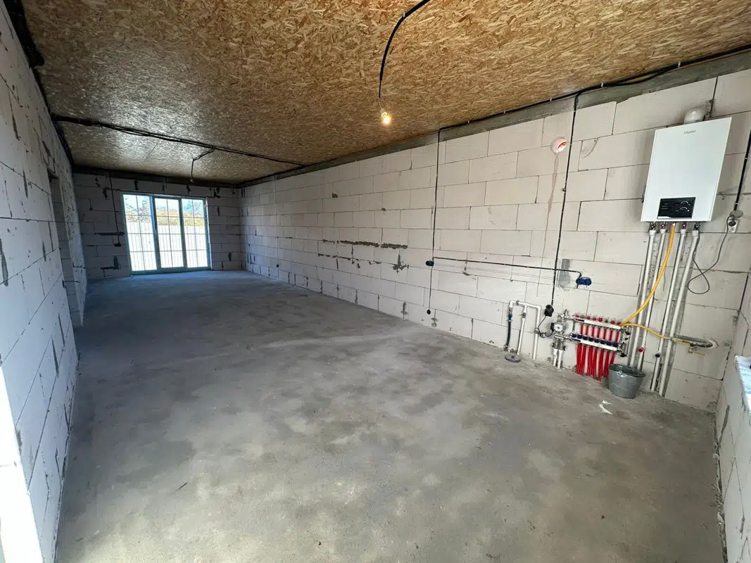 - Внутри дома гипсовая механизированная штукатурка под маяк, отопление теплый пол с выводом под радиаторы, стяжка пола механизированная 50-70 мм. Электрика по ГОСТ