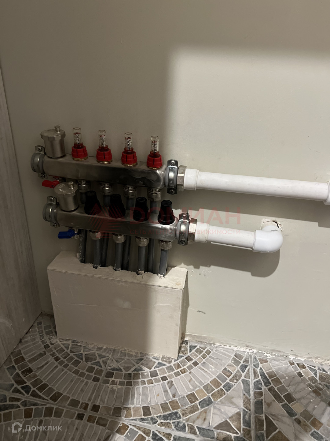 Полы в зоне кузни-столовой, входной части, в коридоре и в санузлах-теплые, водяные.