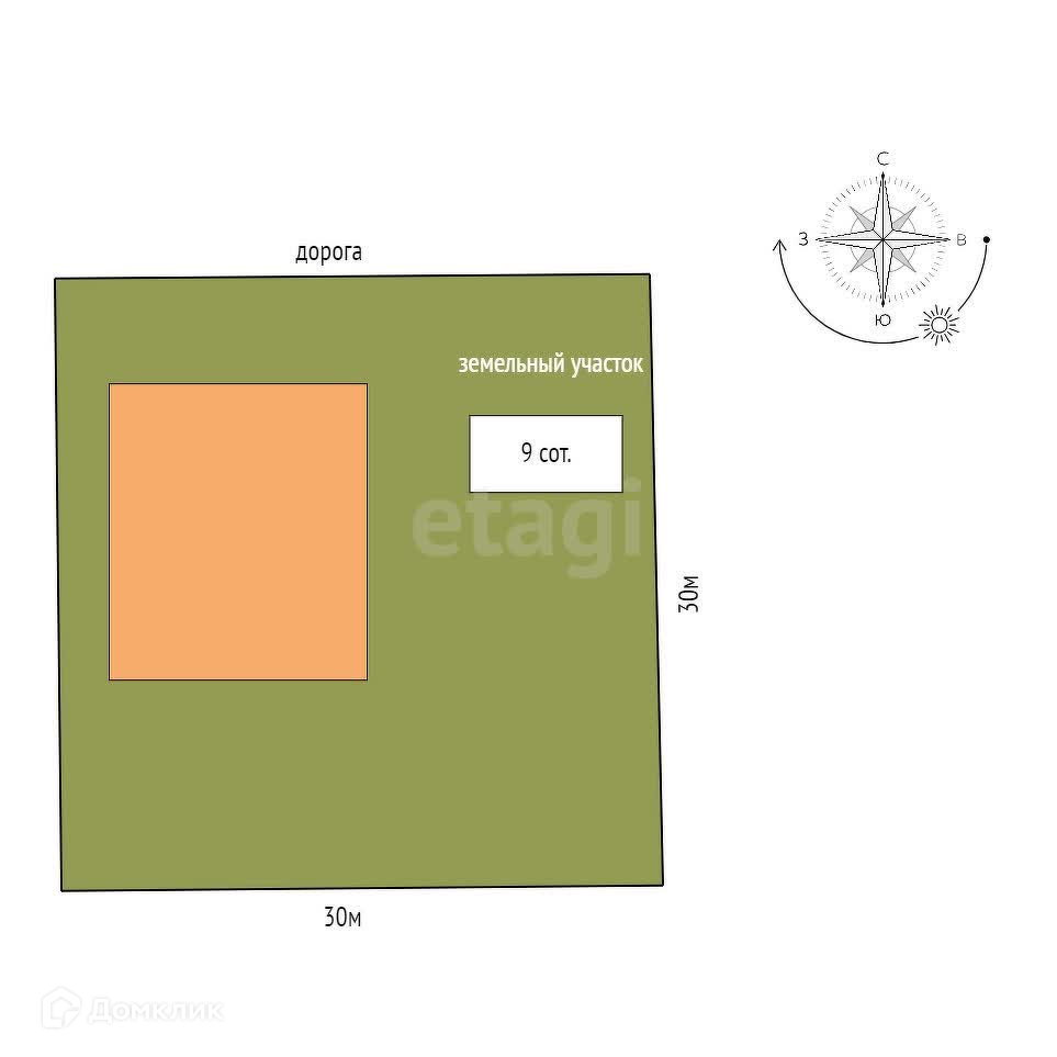 Площадь участка 9 сот.