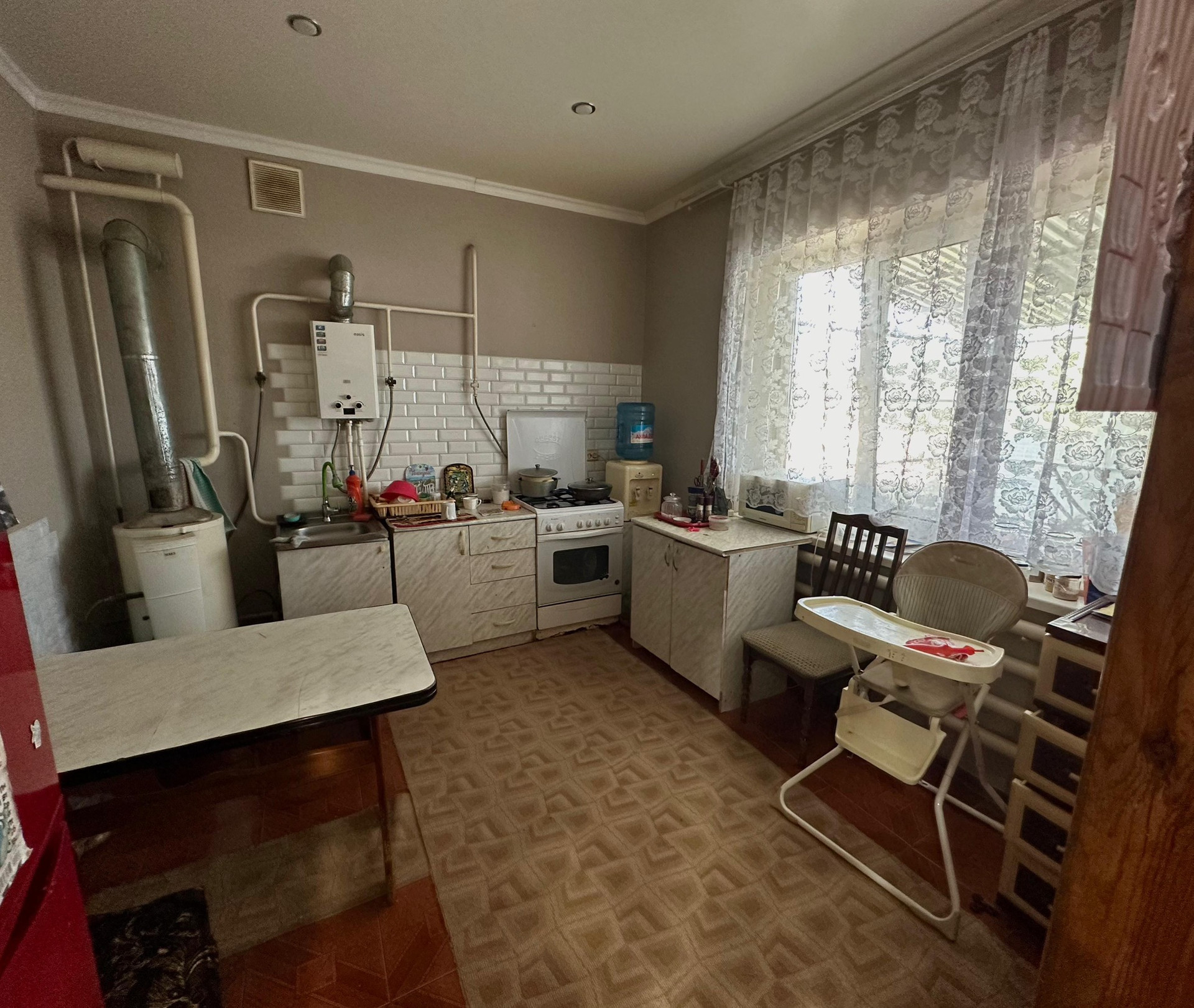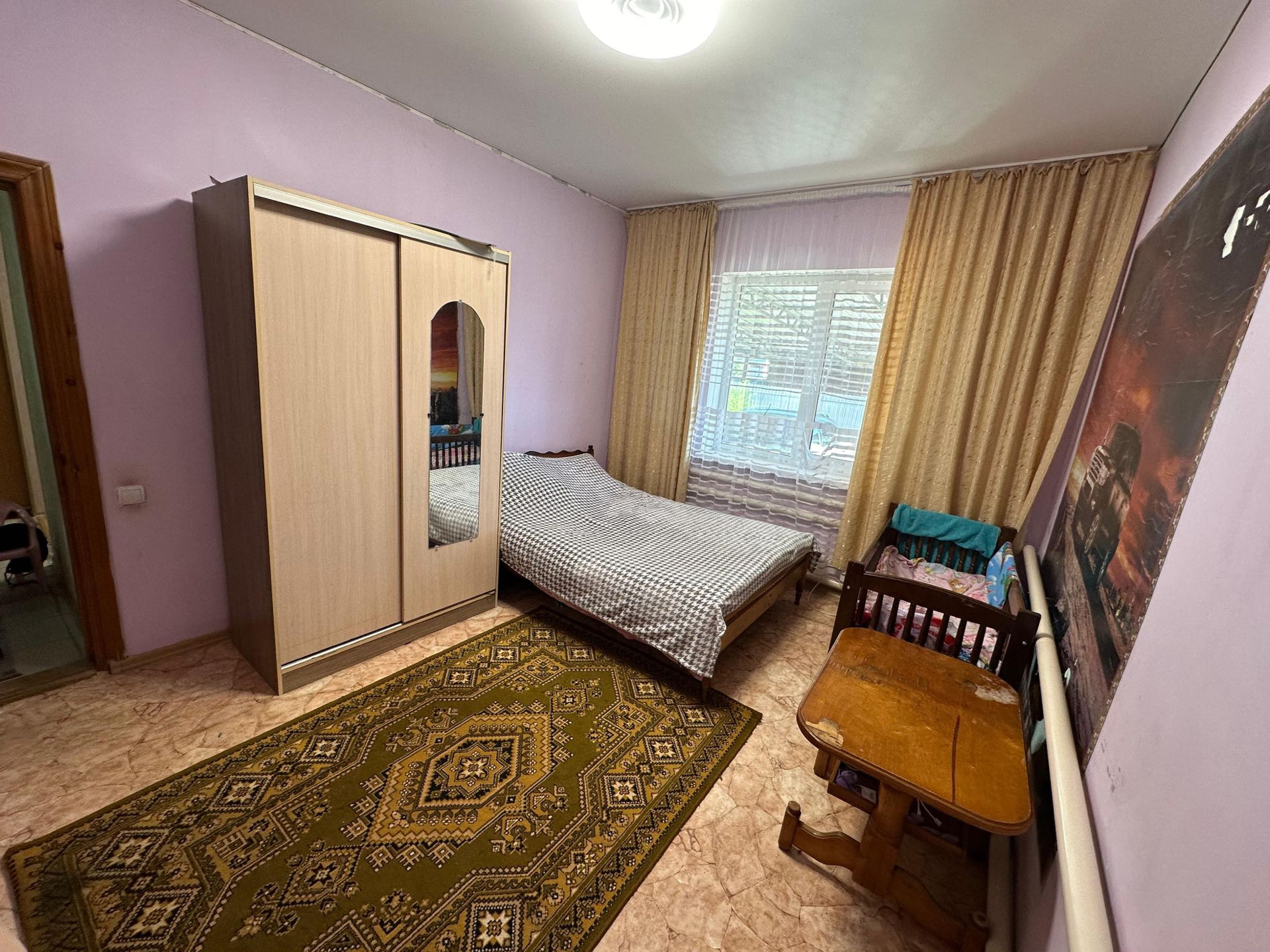 Так же второе основное сторонние. Старая постройка, выполнен из самана. Заменены окна на пластиковые, есть отопление, вода, газ.