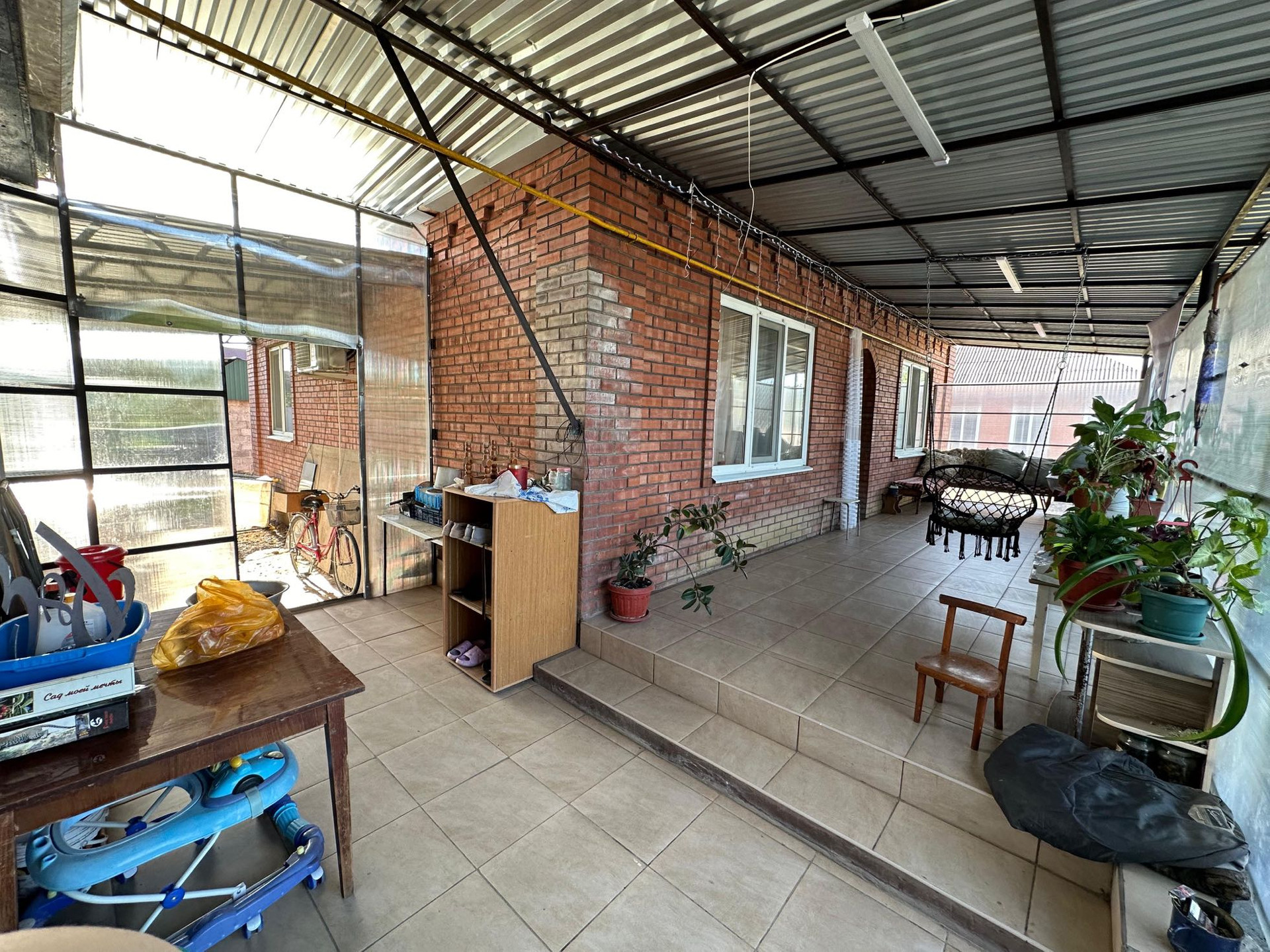Выход во двор с двух сторон террасы.