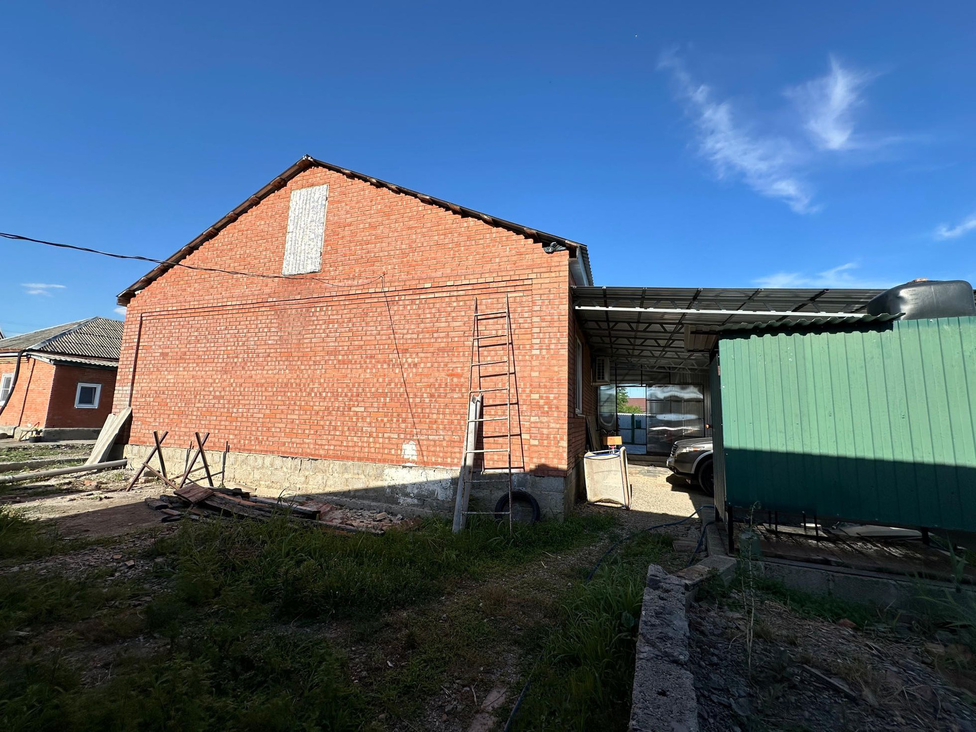 Дом строился для семьи из 6 человек, полностью из кирпича. Крыша из металла профиля.