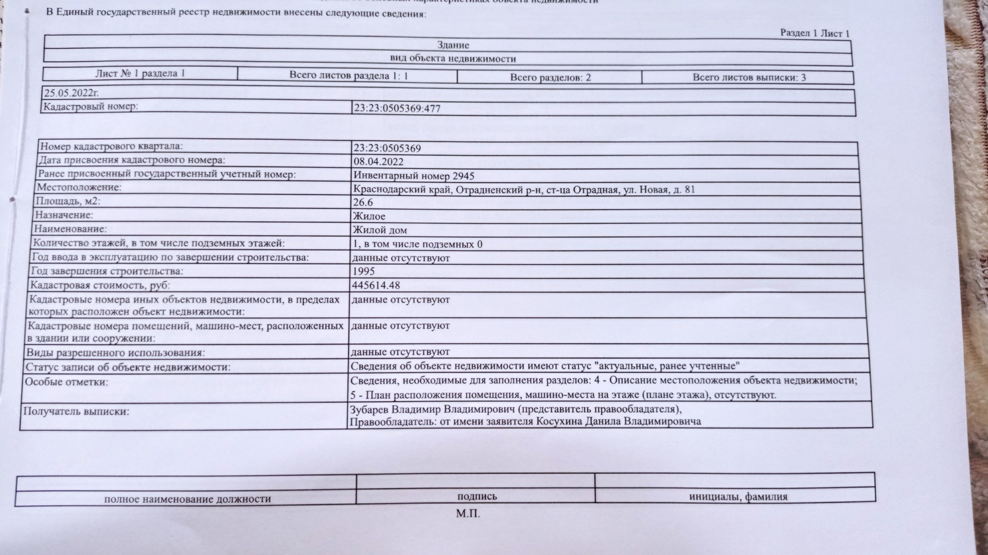 Стоимость недвижимости: