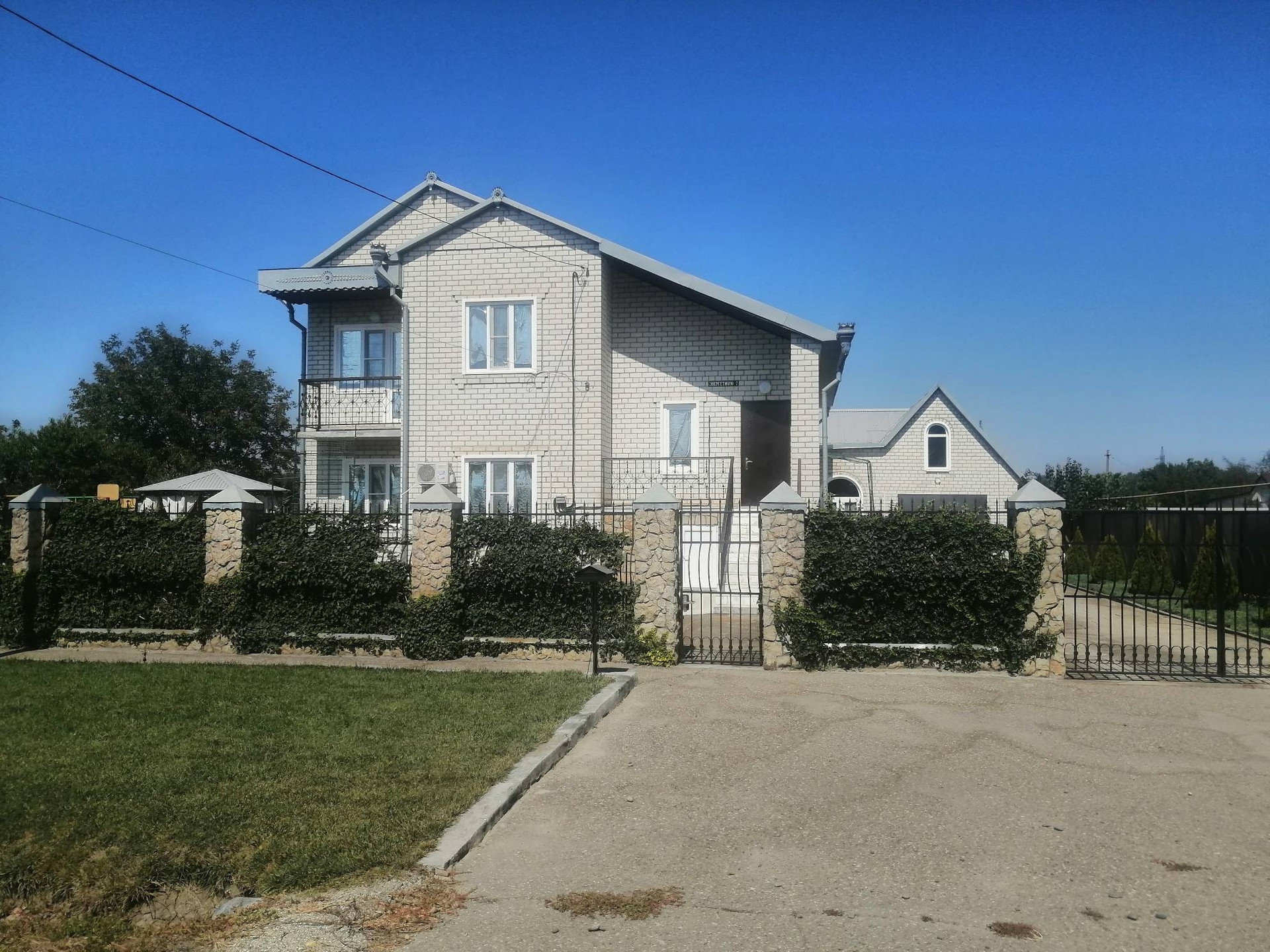 Выставлен на продажу двухэтажный жилой дом, который соединён с летней кухней галереей. Земельный участок 13 соток с широким фасадом. Фруктовый сад из молодых деревьев.  На территории есть беседка, игровая площадка. В доме: подвал, гараж.