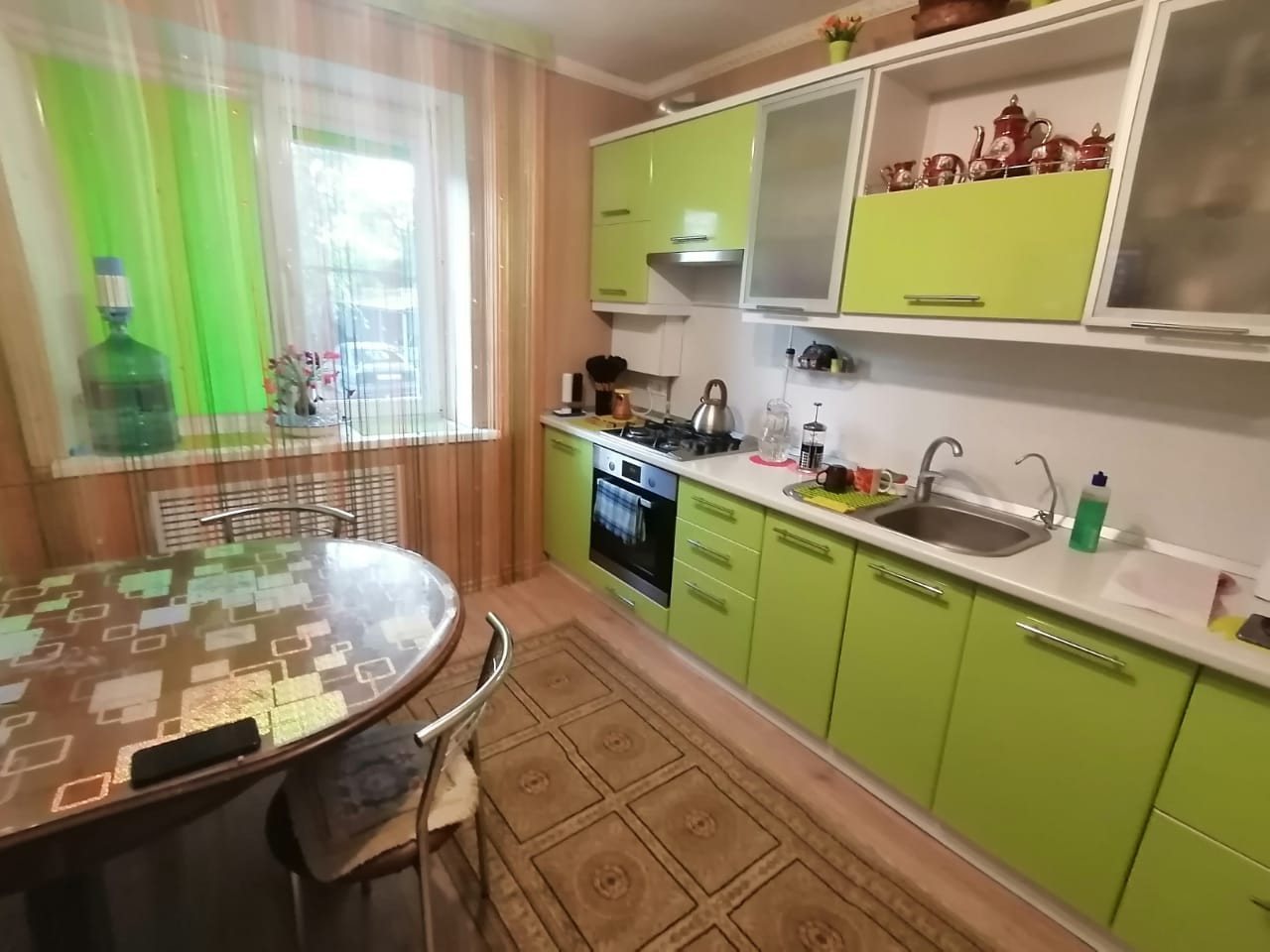 Продается шикарная четырёхкомнатная квартира в самом центре .Заходи и живи. Мебель и техника почти вся остается. Удобная планировка. Первый этаж- вообще класс. До садика 1 мин. До школы 3 мин. Все вопросы по телефону.