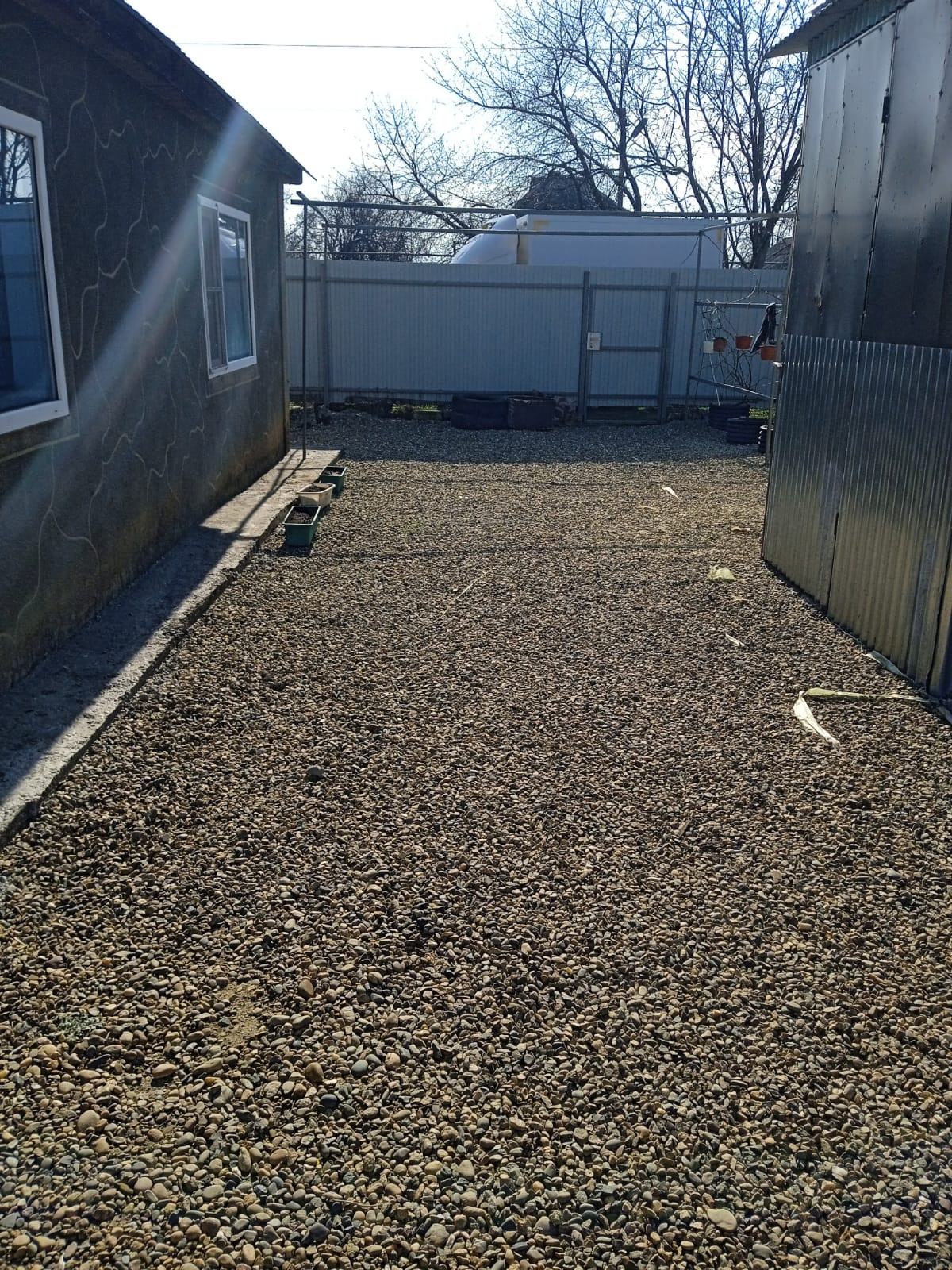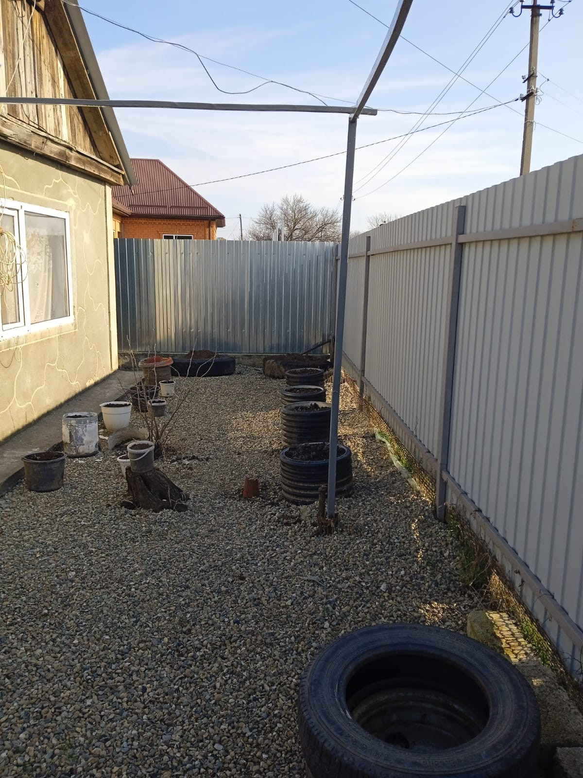 Ровный, широкий, сухой, огороженный со всех сторон профлистом площадью 25 соток.