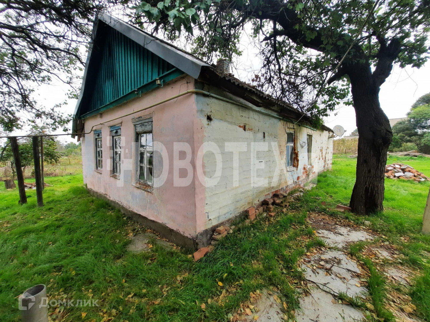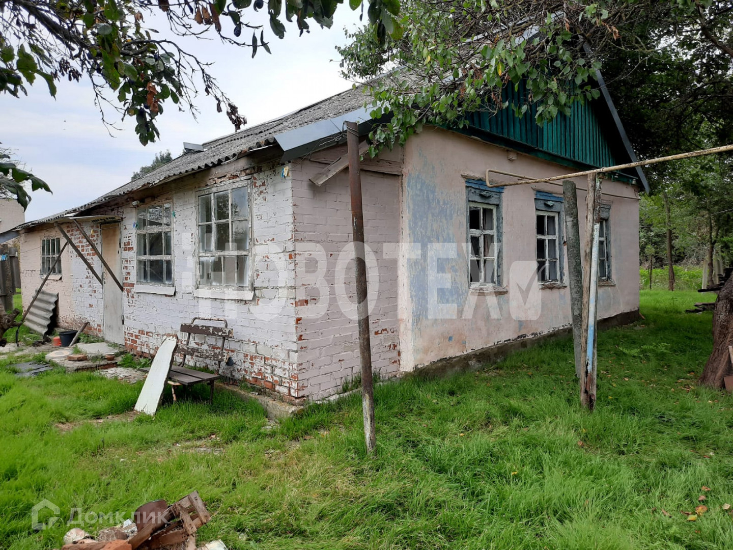 Дом из блока и кирпича, старенький но жилой.