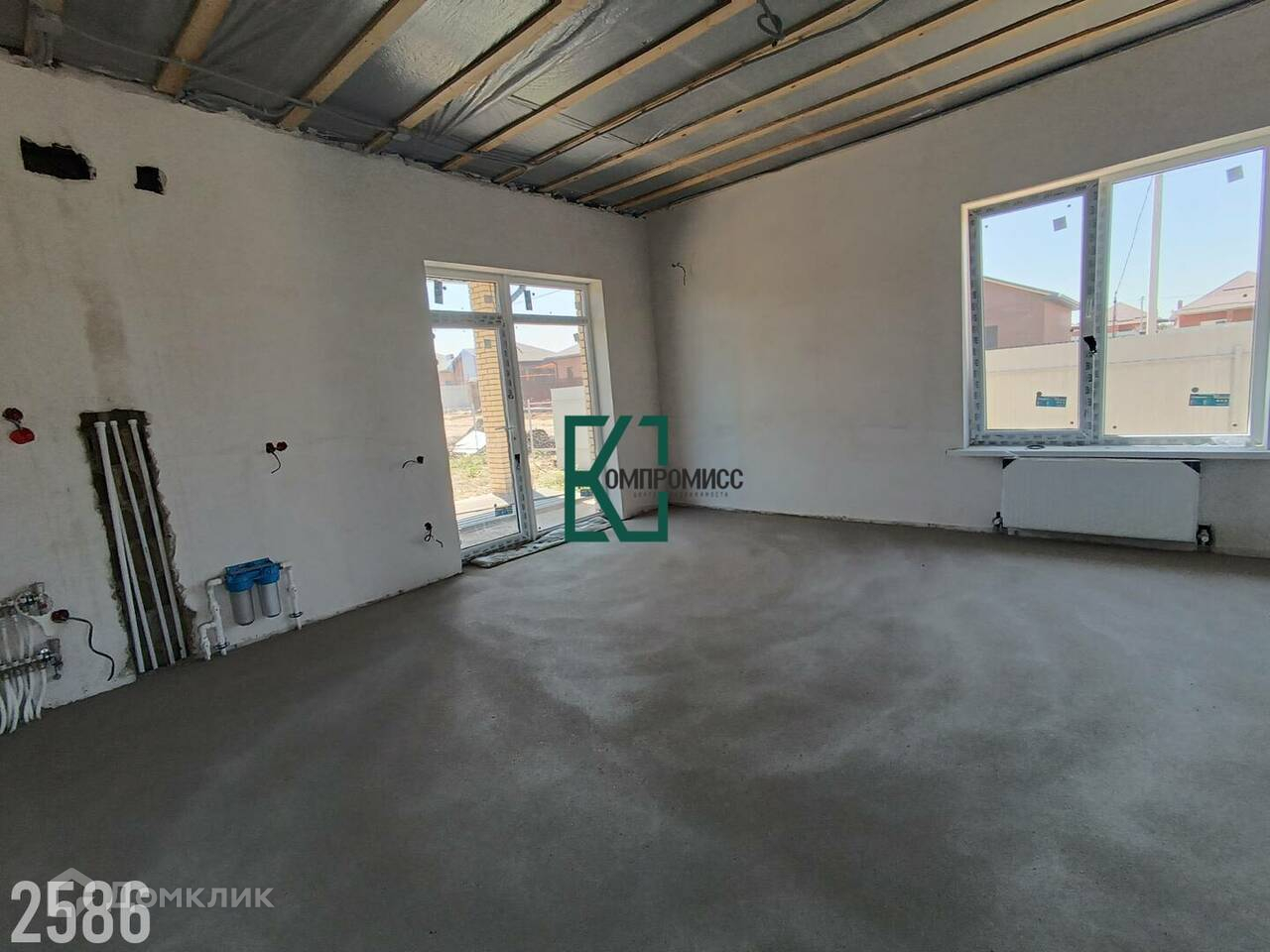 Коммуникации: центральный сетевой газ, вода- центральная,  электричество (3 фазы, 15 кВт), канализация- септик. Окна в доме металлопластиковые, высота потолков 2,9 метра. В коридоре, кухне-гостиной и санузлах тёплый пол. Установлен двухконтурный газовый котел.  Предчистовая отделка.