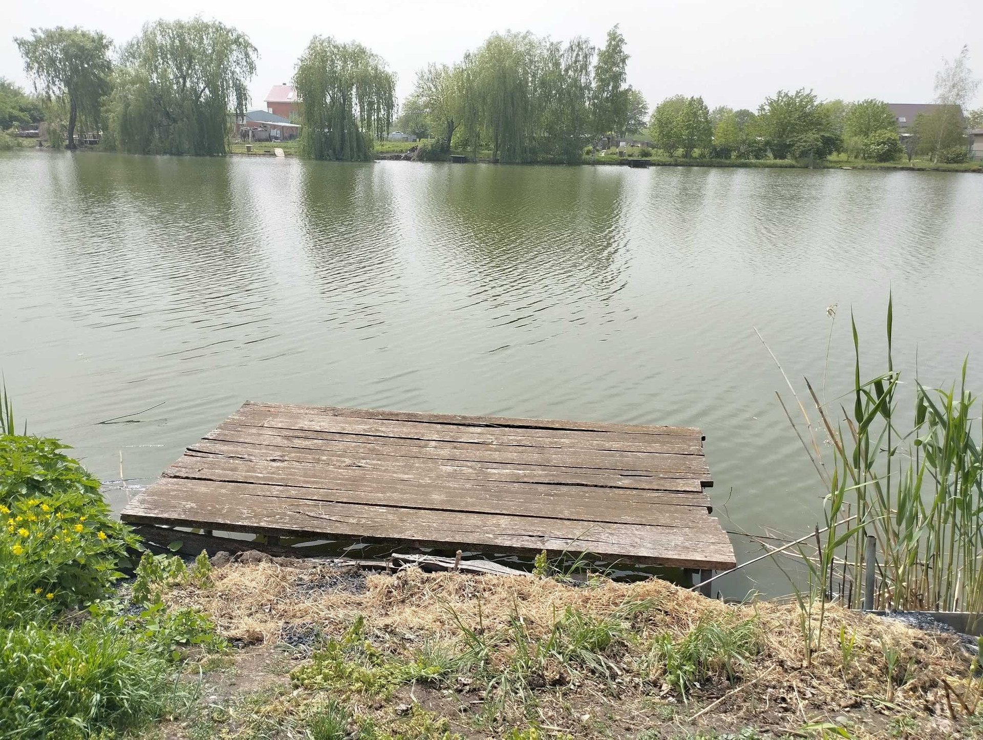 Домик с участком с выходом в реку, берег чистый без камыша, река широкая. Ширина участка 15 метров, по периметру плодовые деревья, домик без ремонта, свет, газ, вода, можно жить и строиться.