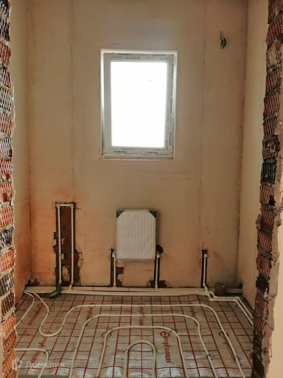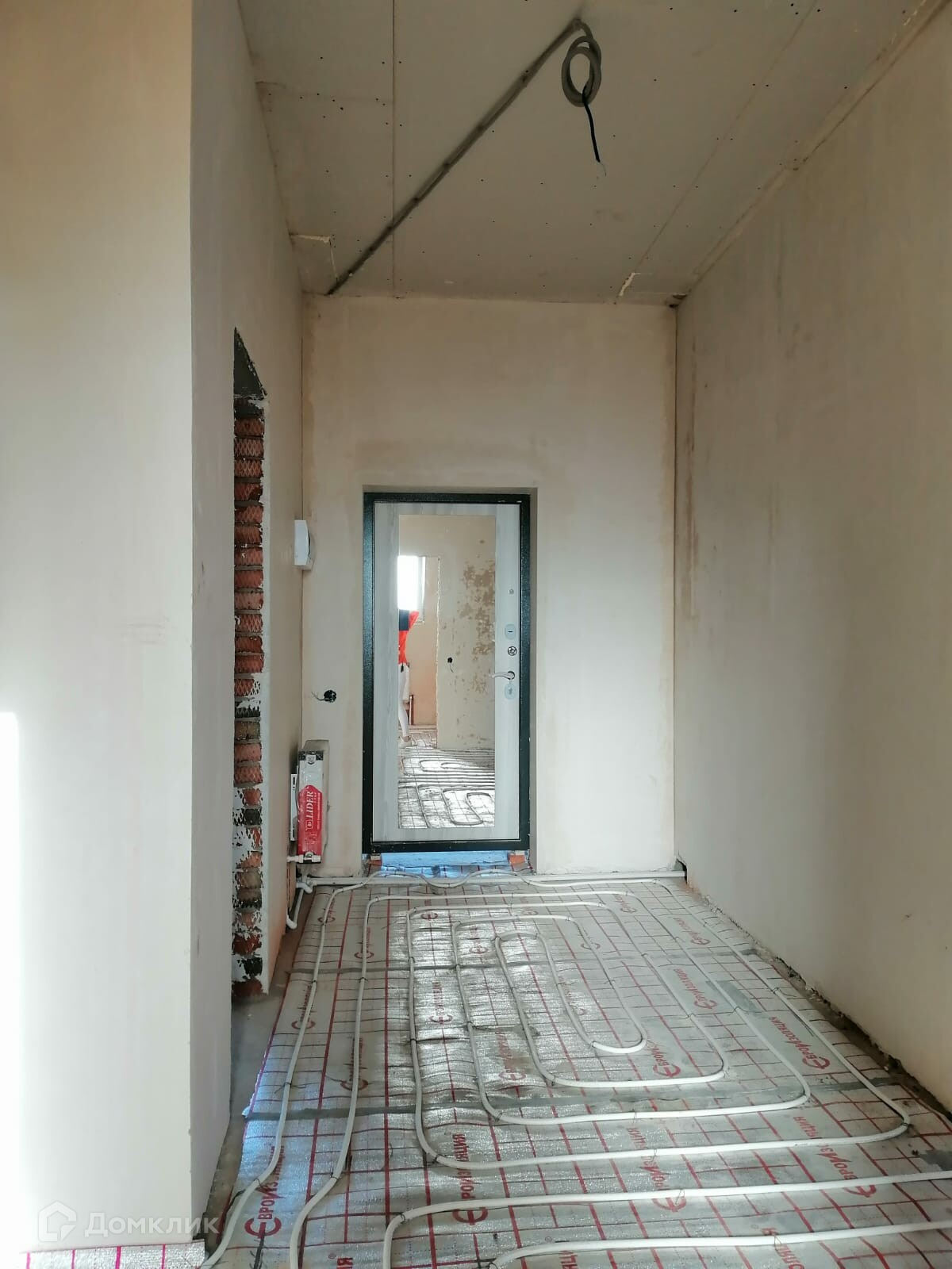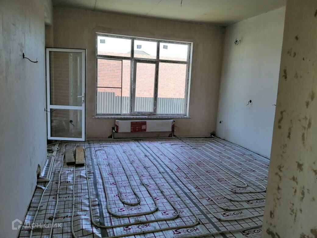 Предчистовая отделка: теплый пол, стяжка, выводы электрики, стены оштукатурены и зашпаклеваны, отшлифованы.