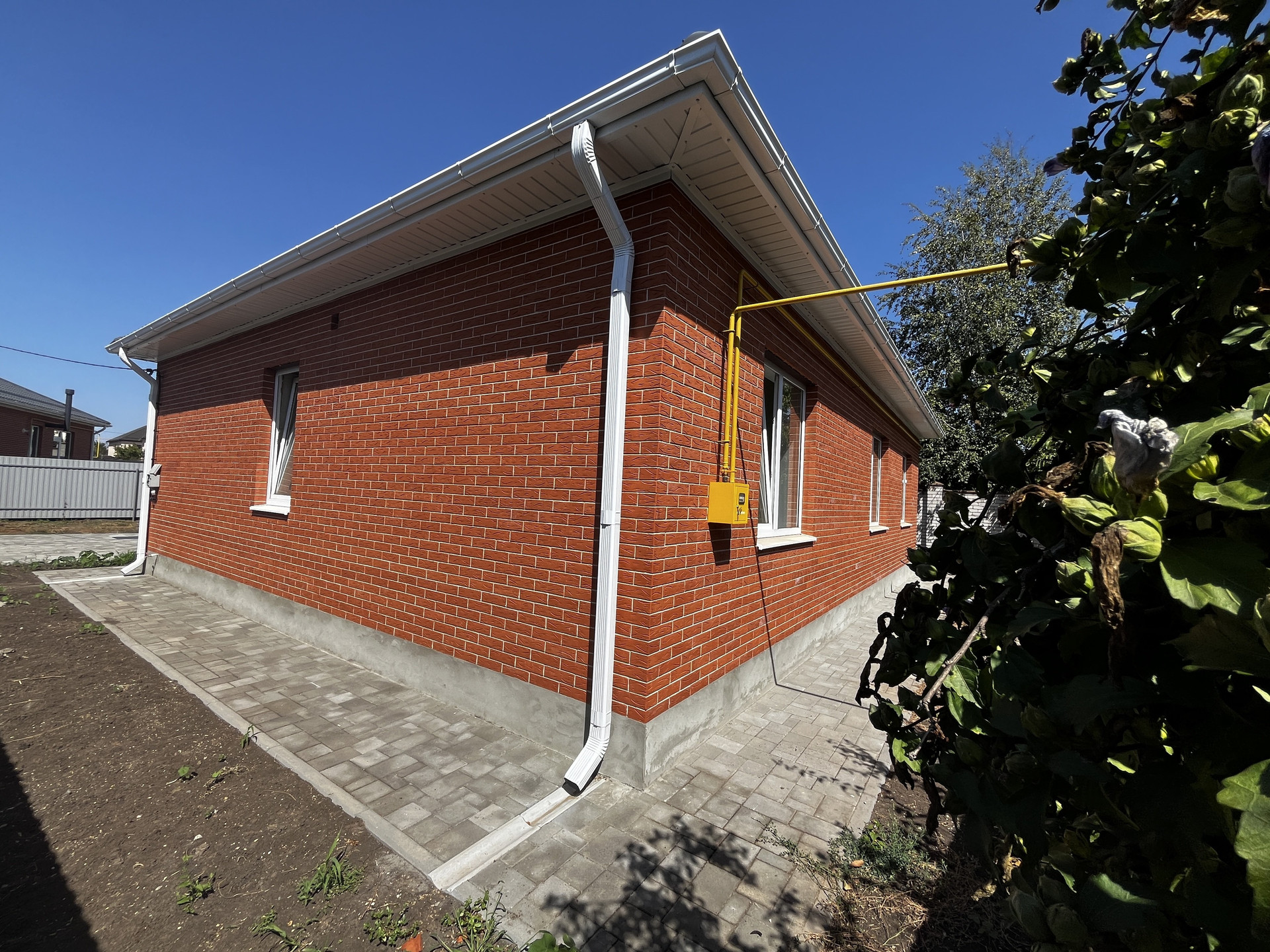 В продаже — новый готовый коттедж со всеми коммуникациями в станице Пластуновской, Динской район.