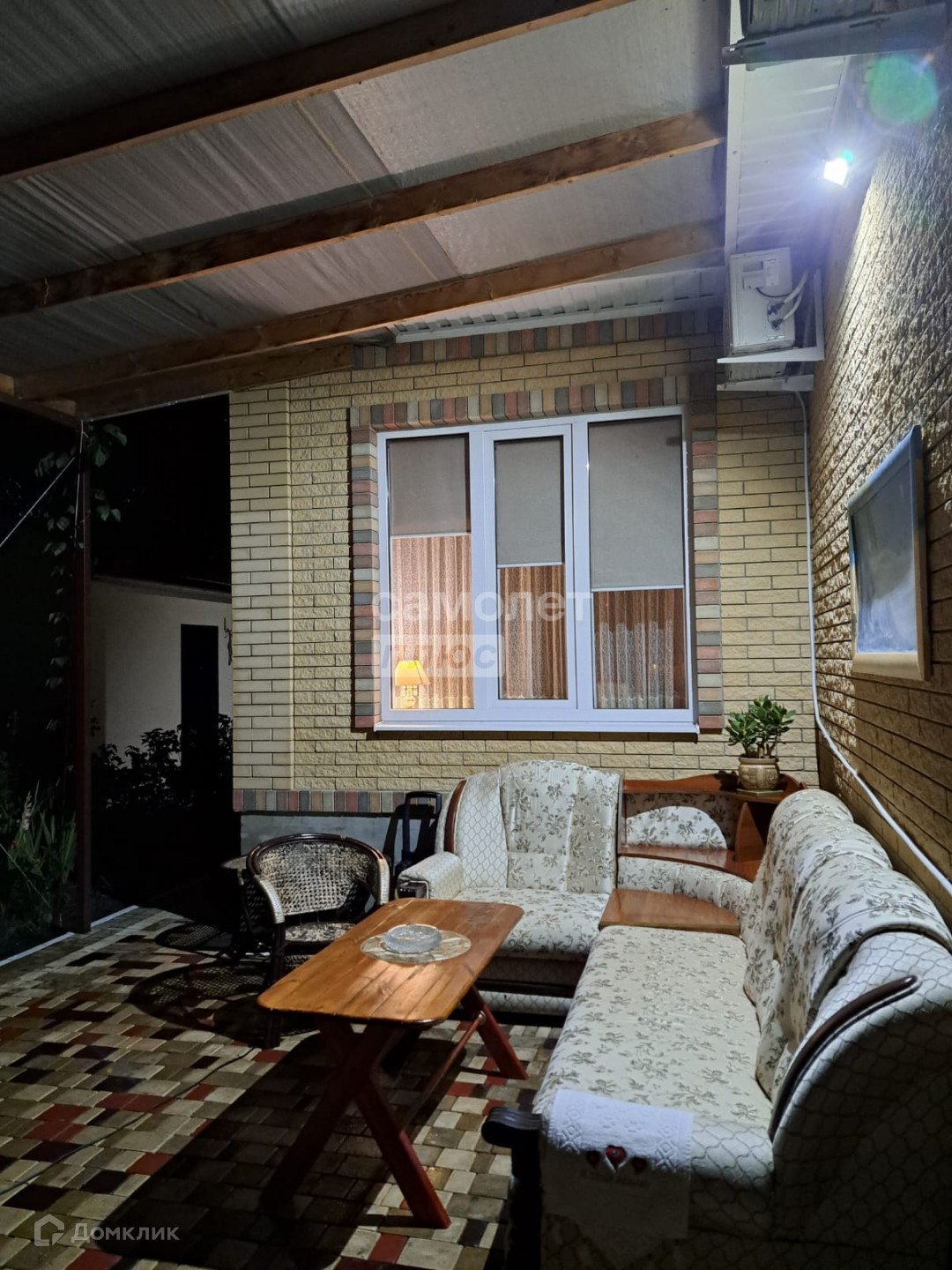 Обустроенная   крытая зона отдыха  во дворе , чтобы принимать гостей и отдыхать всей семьей на свежем воздухе.