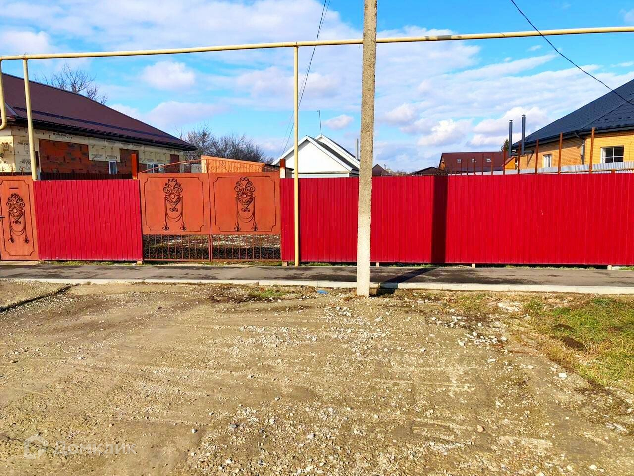 Участок ровный, правильной формы, на высоком месте ст. Полтавской, с фасадом 18 метров, с поднятой газовой трубой перед въездом что позволяет без препятственно въехать на участок грузовой машине. Участок огорожен забором из металлопрофиля.