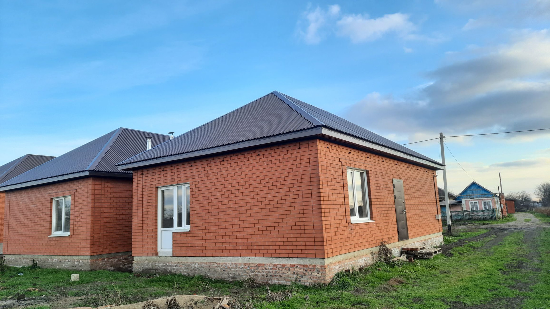 новый дом стены кирпич, внутренние стены кирпич, 3 жилых комнаты +кухня, санузел совместный, штукатурка механическая, тёплые полы, сухопресованныя стяжка теплые полы, плитка керамогранит, газ, свет подключены имеются счетчики, окна пластиковые трех камерные, потолок утеплен минватой, имеется люк с лестницей внутри дома на чердак, 150 метров до асфальта, школа магазины и прочее в шаговой доступности, дом новый , камфорный ждет своего хозяина, вопросы по телефону