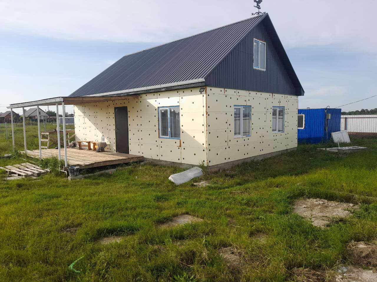 Новый дом, 2022 года постройки, в доме санузел и ванна, три комнаты. Участок 5 соток. Все вопросы по телефону.