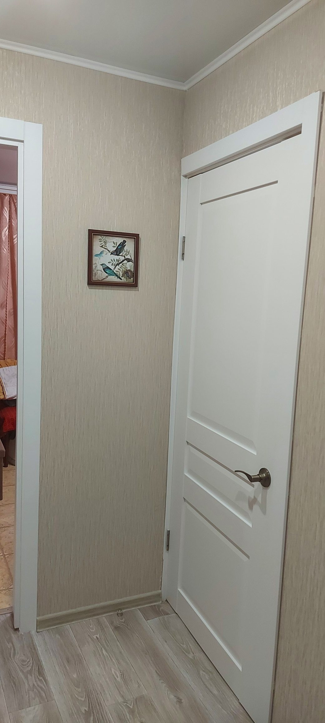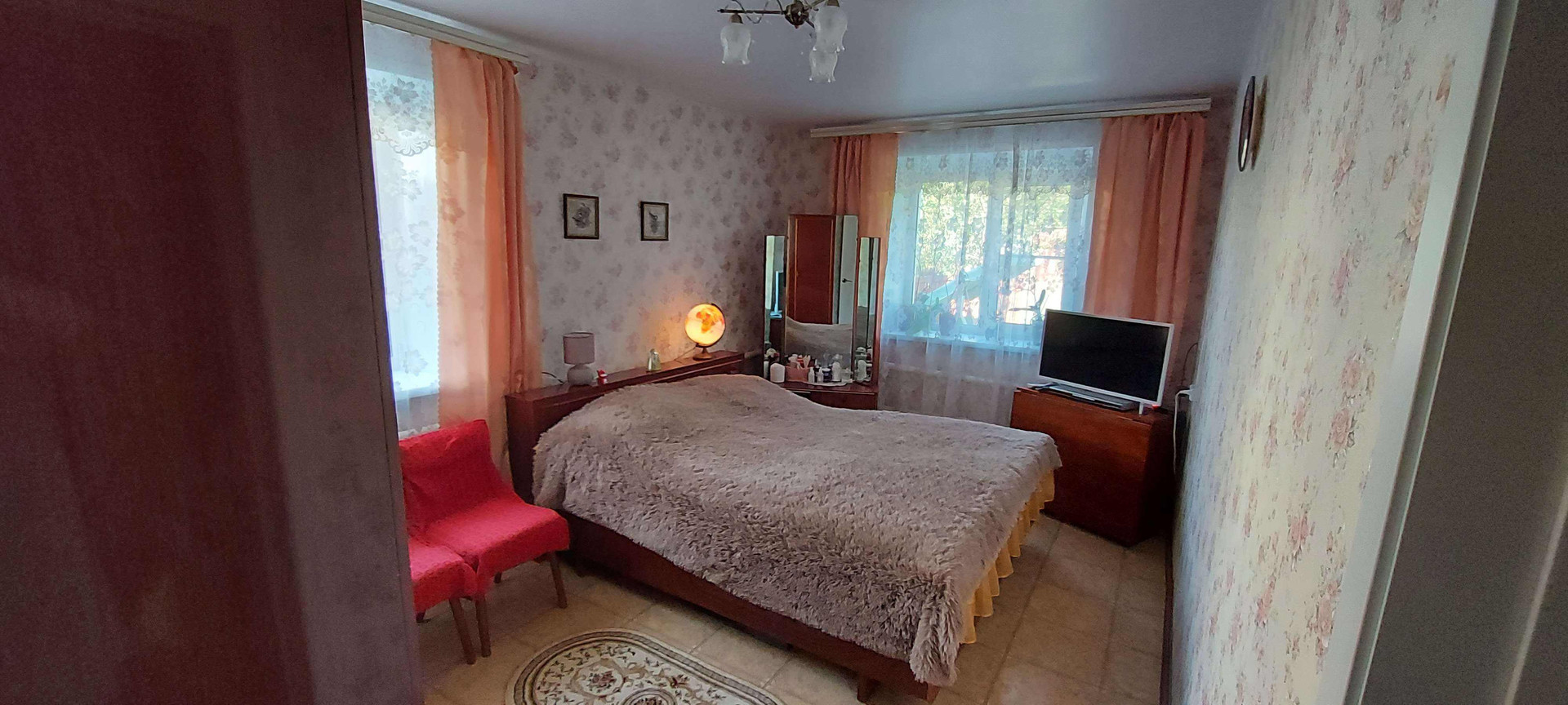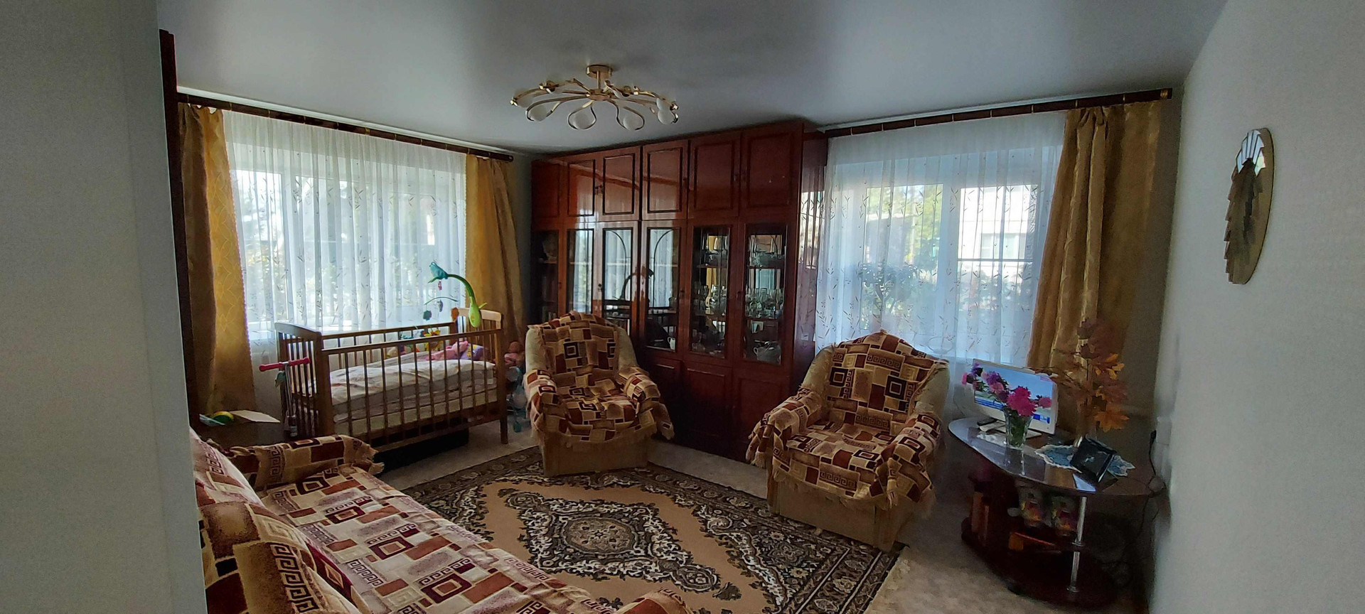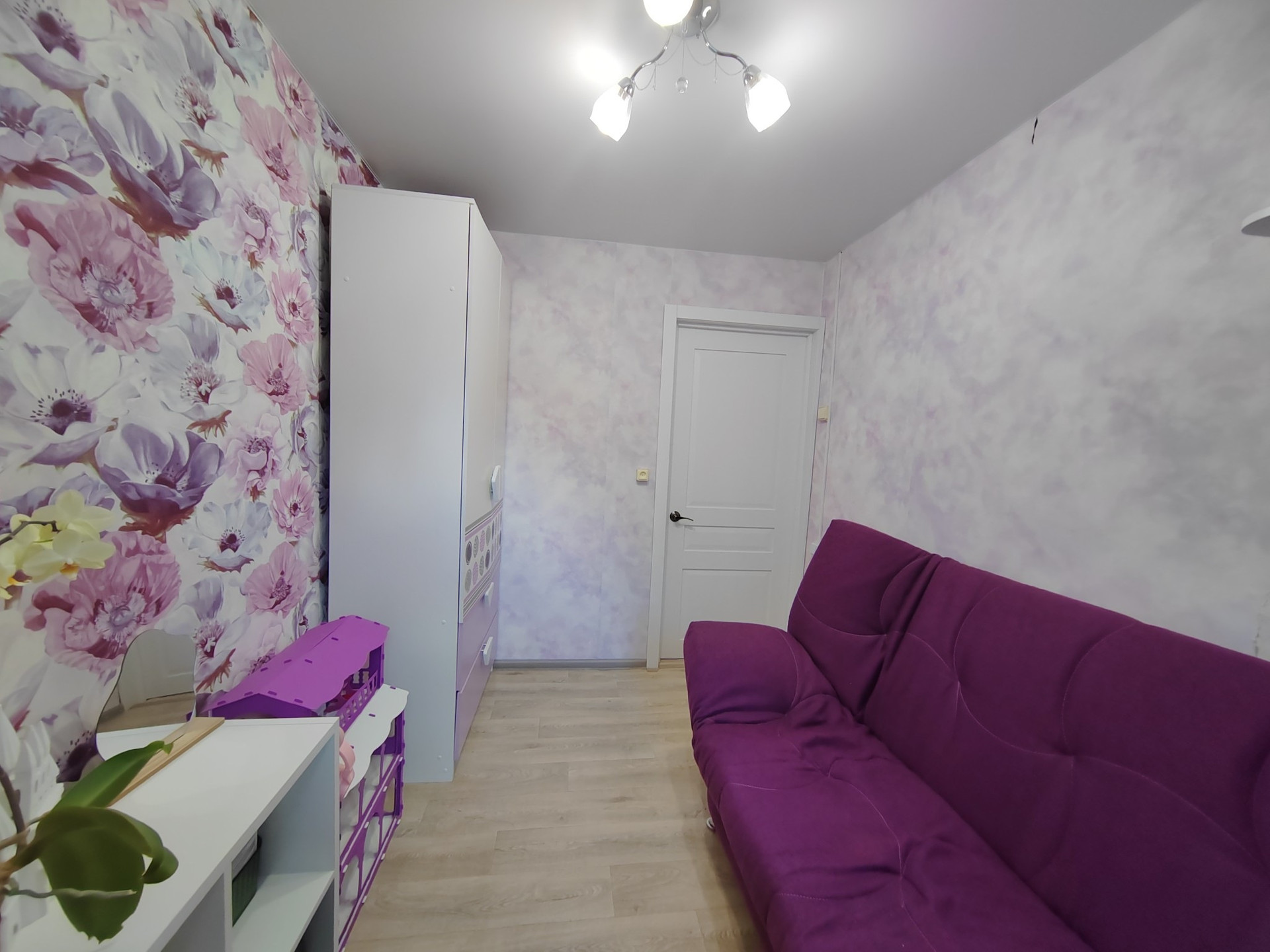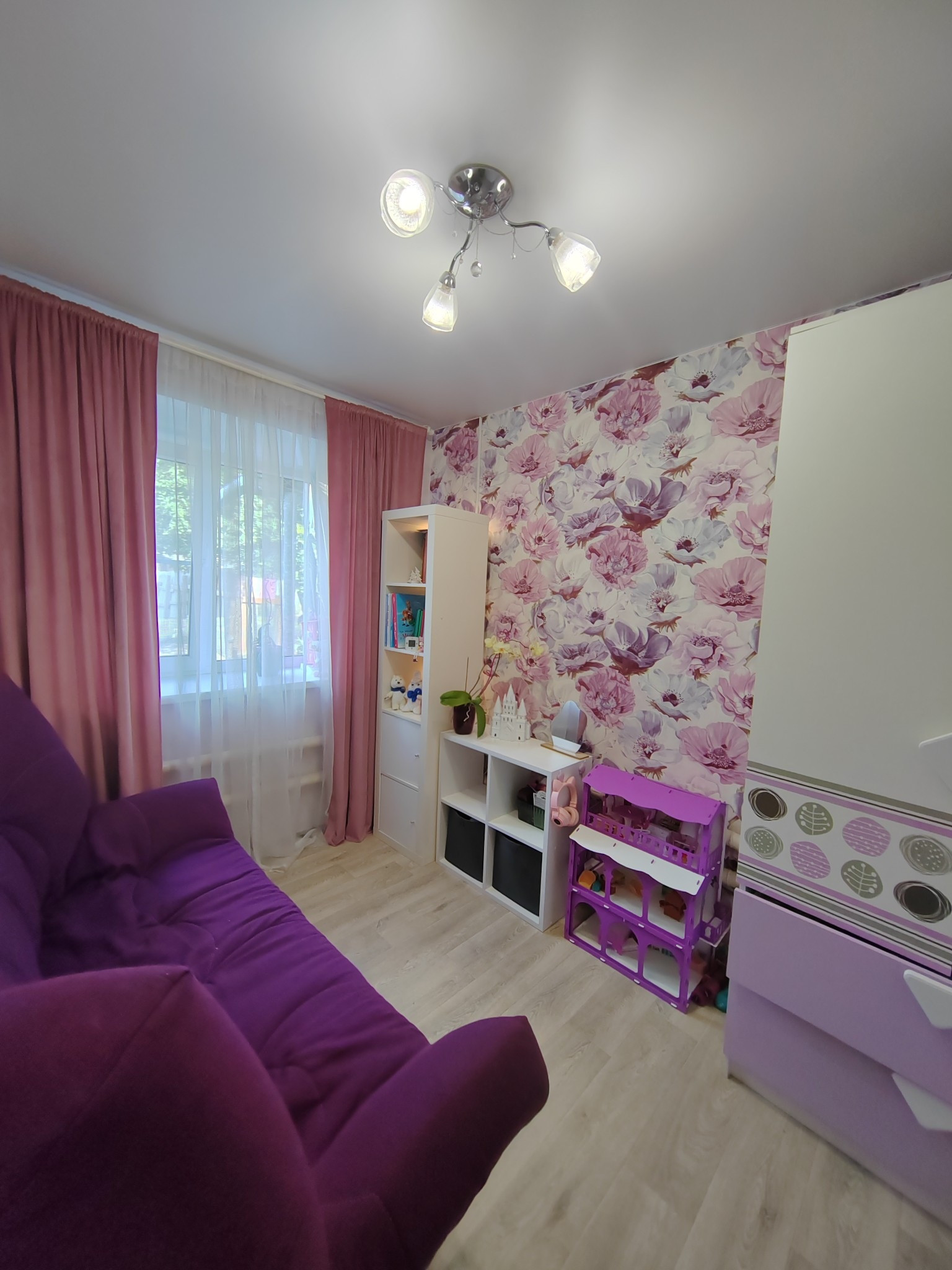 Сатиновые натяжные потолки, заменена полностью электропроводка. Заменены окна на пластиковые трёхкамерные, установлена хорошая входная дверь, стены выровнены гипсокартоном. Установлены новые межкомнатные двери из массива с хорошей звукоизоляцией. поклеены свежие обои.