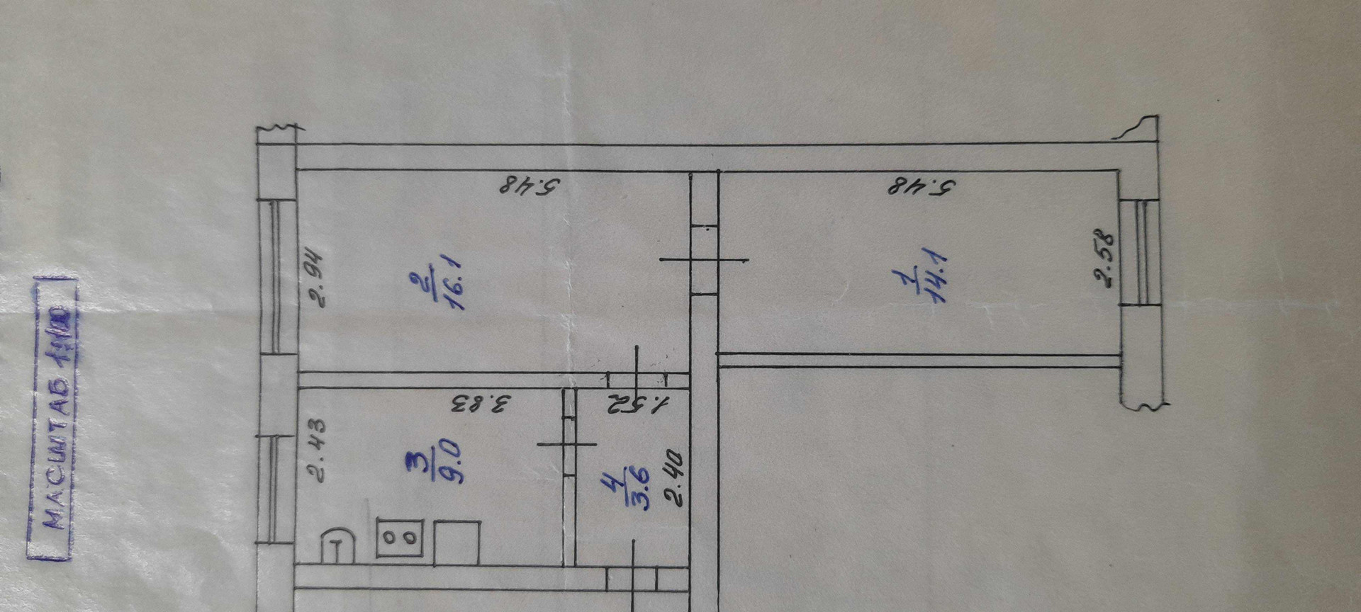 Жилая площадь 30.2 м2
