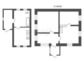 Общая площадь: 42.9 м2