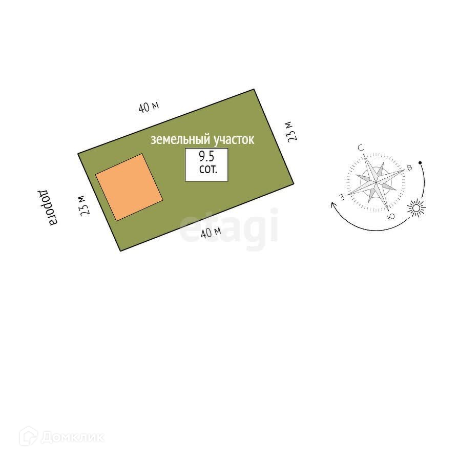 Площадь участка 9.5 сот.