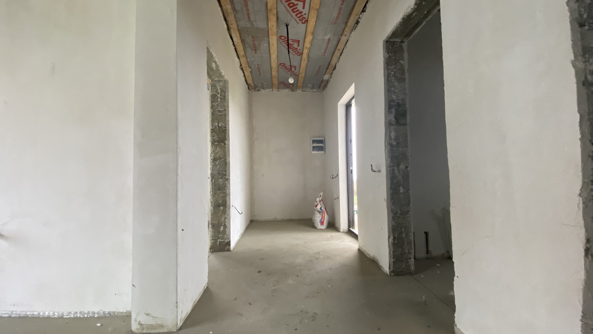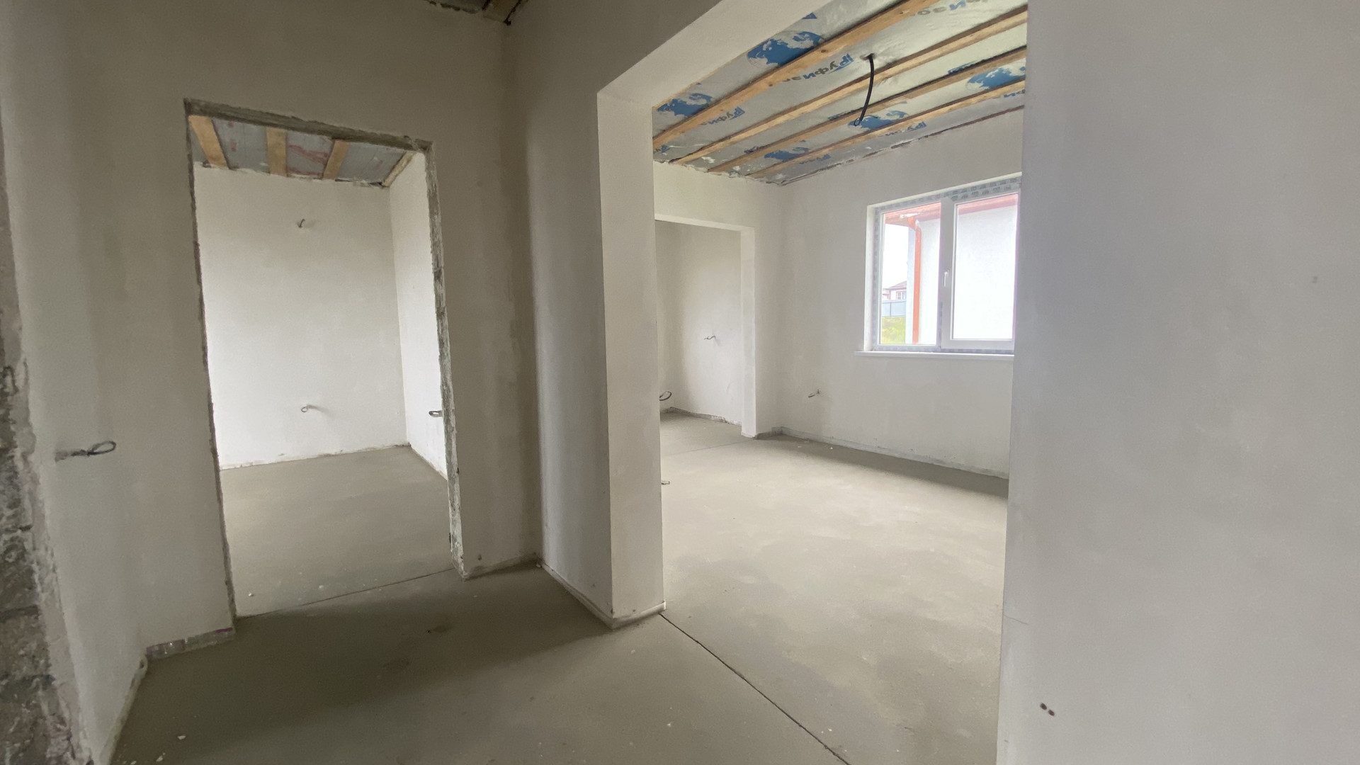 Чистовая отделка: механизированная штукатурка, тёплый пол, стяжка, разводка электричества и отопления, установлены радиаторы.