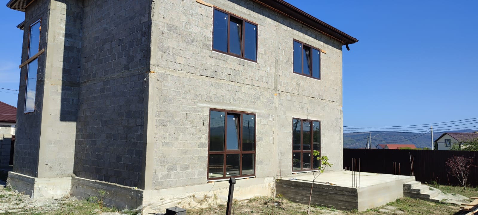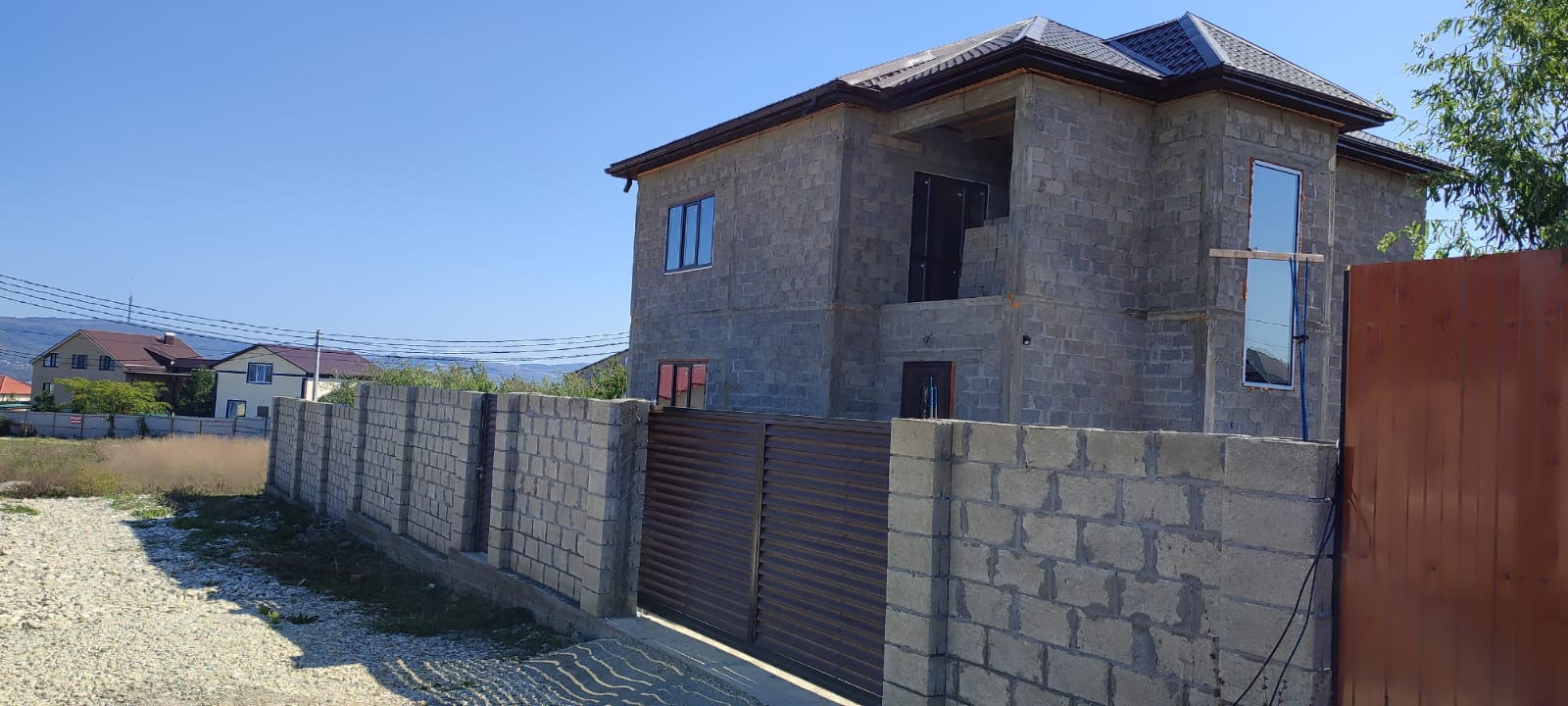 Продам новый дом с участком+домик для проживания на момент ремонта основного дома. Участок 7 соток, правильной формы, ровный. Современный дом, под чистовую отделку. 240 кв.м. В доме два этажа с просторными комнатами. Первый этаж: коридор, отдельное помещение под бойлерную, кабинет, санузел, просторная гостиная. Второй этаж: три спальни, гардероб ( можно заменить санузлом). В доме сделана разводка электричество, водоснабжение, канализация. Септик, скважина есть. Залита плита под веранду. Участок полностью огорожен забором, ворота с калиткой ( жалюзи) из хорошего материала. На участке много декоративных насаждений. Домик 20 кв.м с мебелью и техникой для круглогодичного проживания. Хорошие соседи, магазины и остановка в 5 минутах ходьбы. В стоимость входит утепление дома термо панелями под кирпич на ваш выбор.