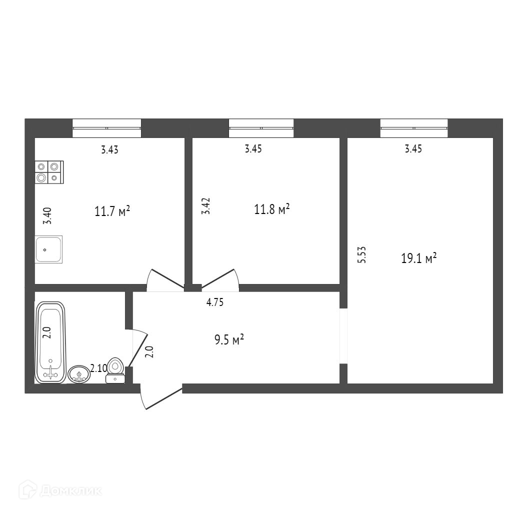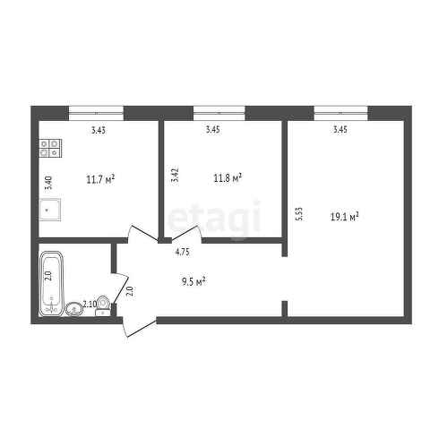 Общая площадь 56.3 м2