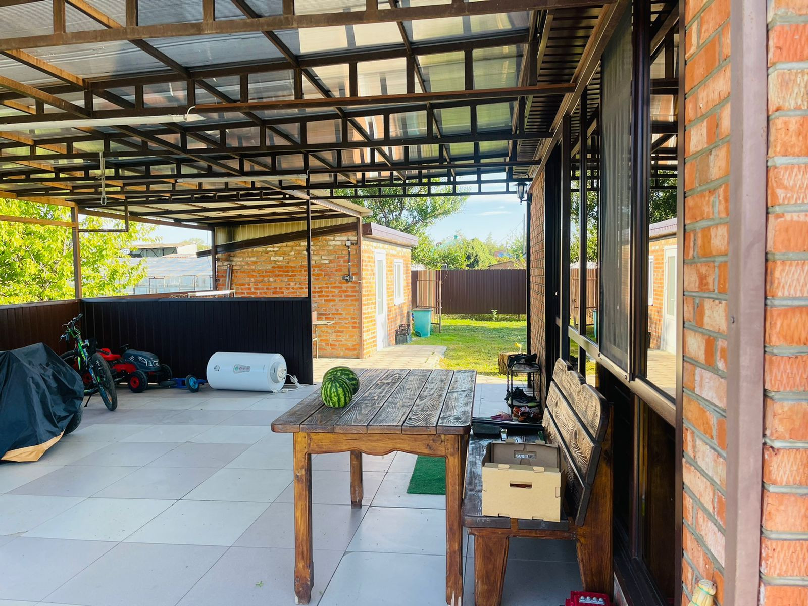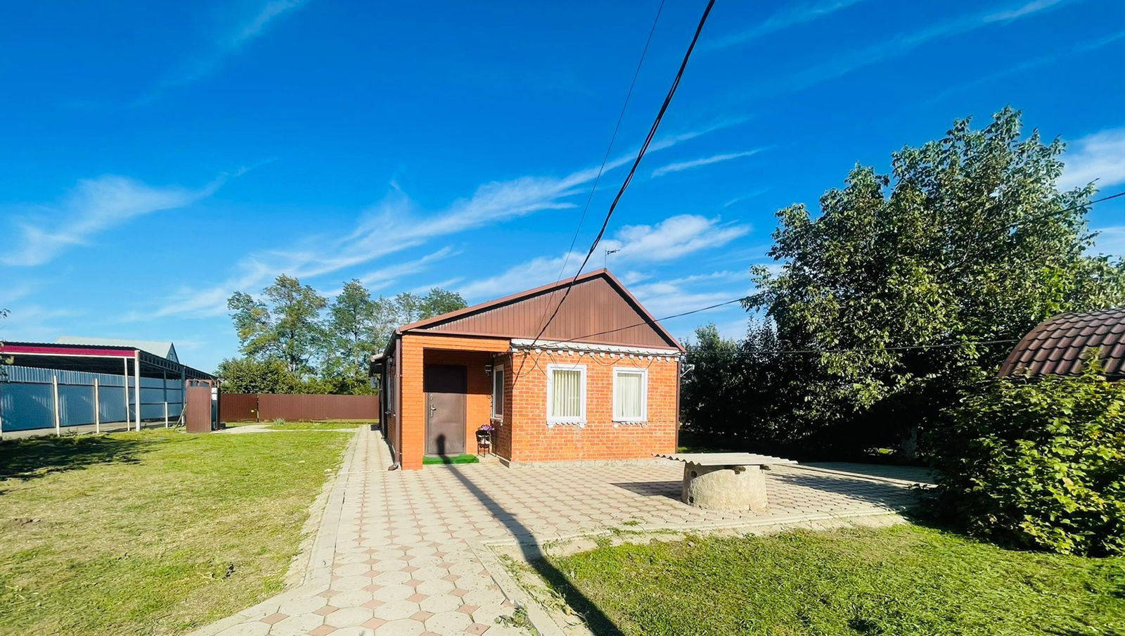 Продаётся дом. Крыша металлочерепица, стены кирпич, металлопластиковые окна. Раздельный сан. узел, кухня-гостиная с витражными окнами. Домашний телефон, оптоволоконный интернет, спутниковое тв. Навес под две машины, навес на заднем дворе. Хоз постройка. Двое въездных ворот. Двор частично в тротуарной плитке. Колодец. Фруктовый сад. Земельный участок огорожен капительным забором кроме сада. В доме останется кухонный гарнитур, детская мебель для двух деток, шкаф купе 2 шт., сплит система, в сан узлах сантехника и мебель так же остаётся. Отличный домик для проживания не большой семьи. Все необходимое остаётся.