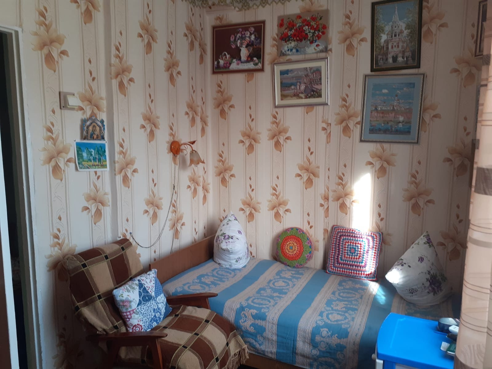 В доме три просторных комнаты плюс три комнаты поменьше, изолированные. Практически вся мебель остаётся в доме.