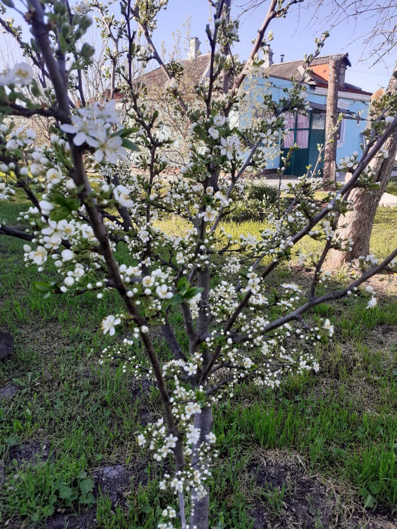 На участке сад, в котором растут: яблони, груши, абрикосы, персики, орехи, черешня, вишня.