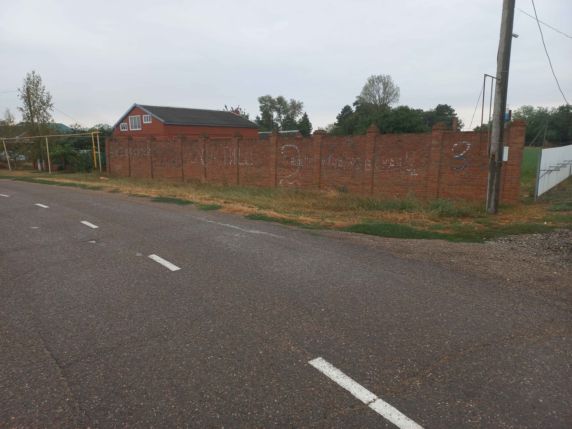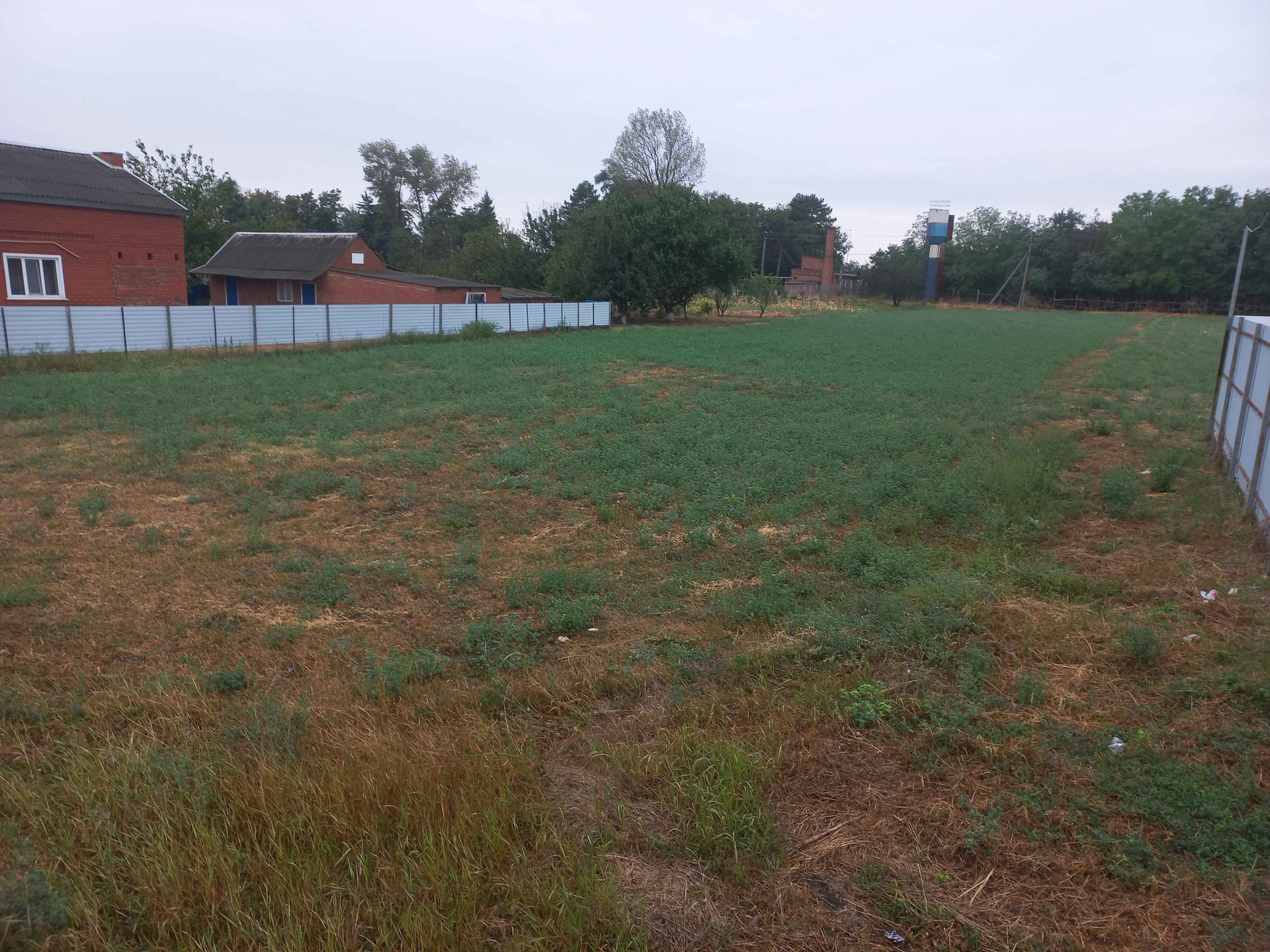 Продаётся земельный участок. По границе земельного участка проходит газ, электричество, водопровод. Асфальтированная дорога, тротуар. Рядом (2-5 минут пешком) находятся детский сад, школа, почта, магазин, автобусная остановка. На фронте участка расположен кирпичный забор.