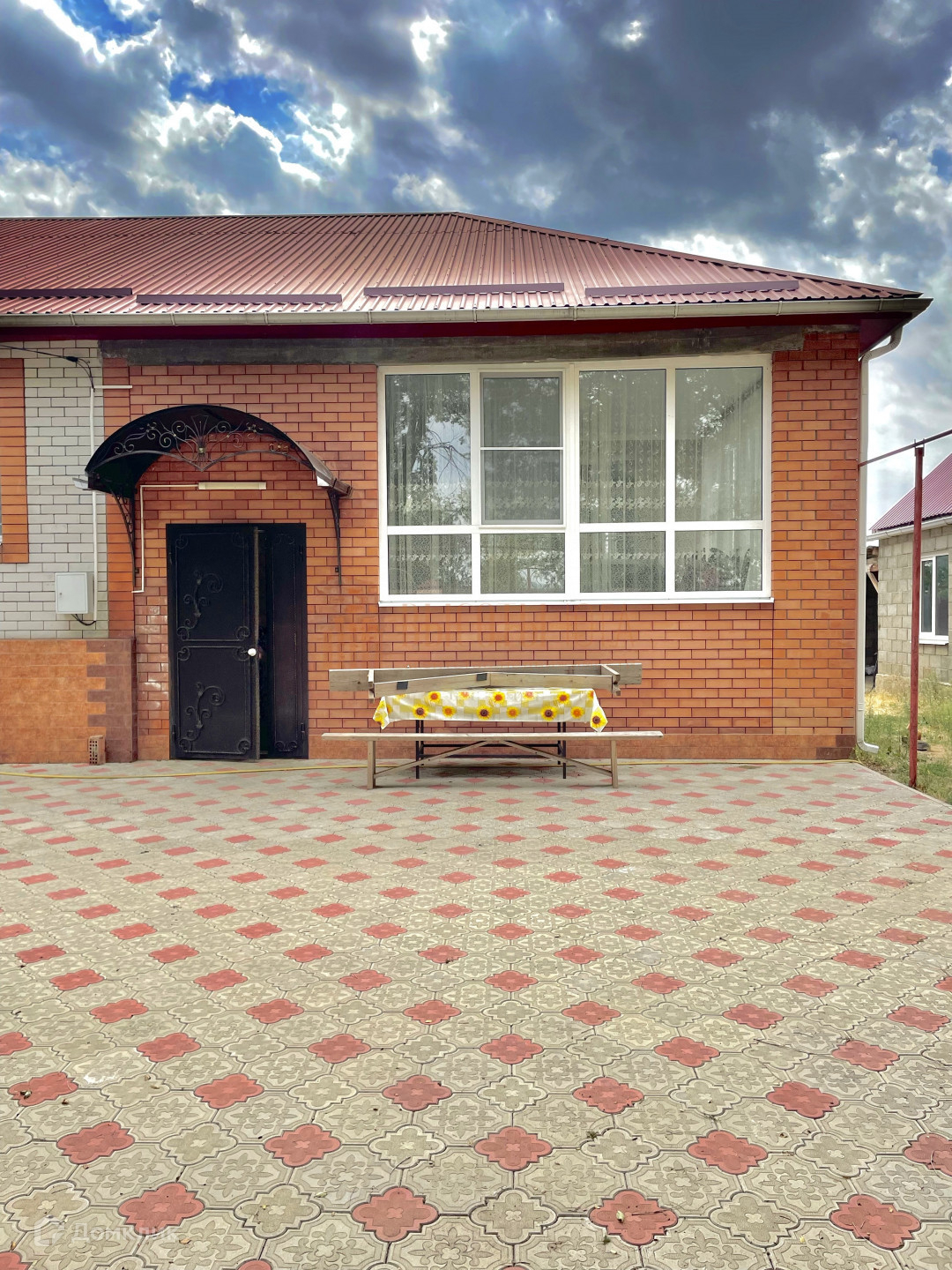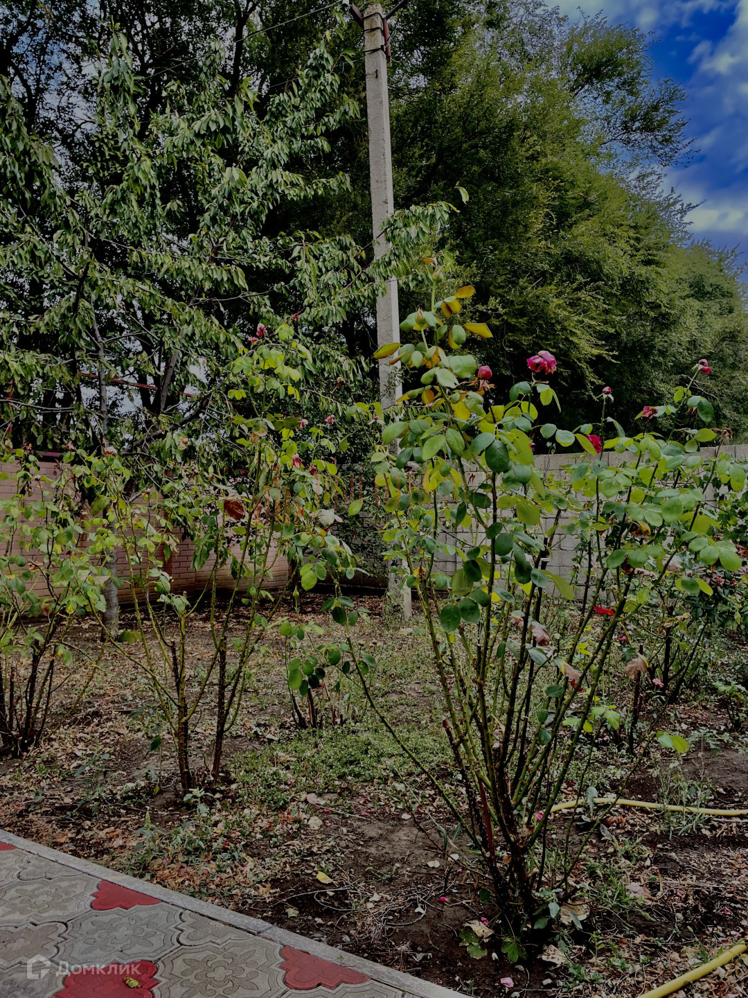 Во дворе перед домом имеется палисадник и место для мангальной зоны, двор вымощен тротуарной плиткой. На заднем дворе располагаются капитальные хоз.постройки и растут плодовые деревья: черешня,вишня,кизил, слива и яблони.
