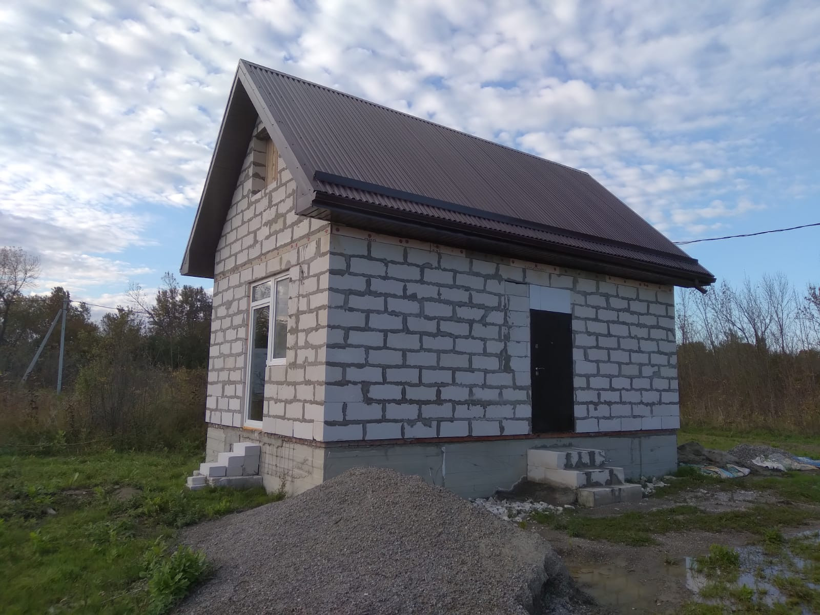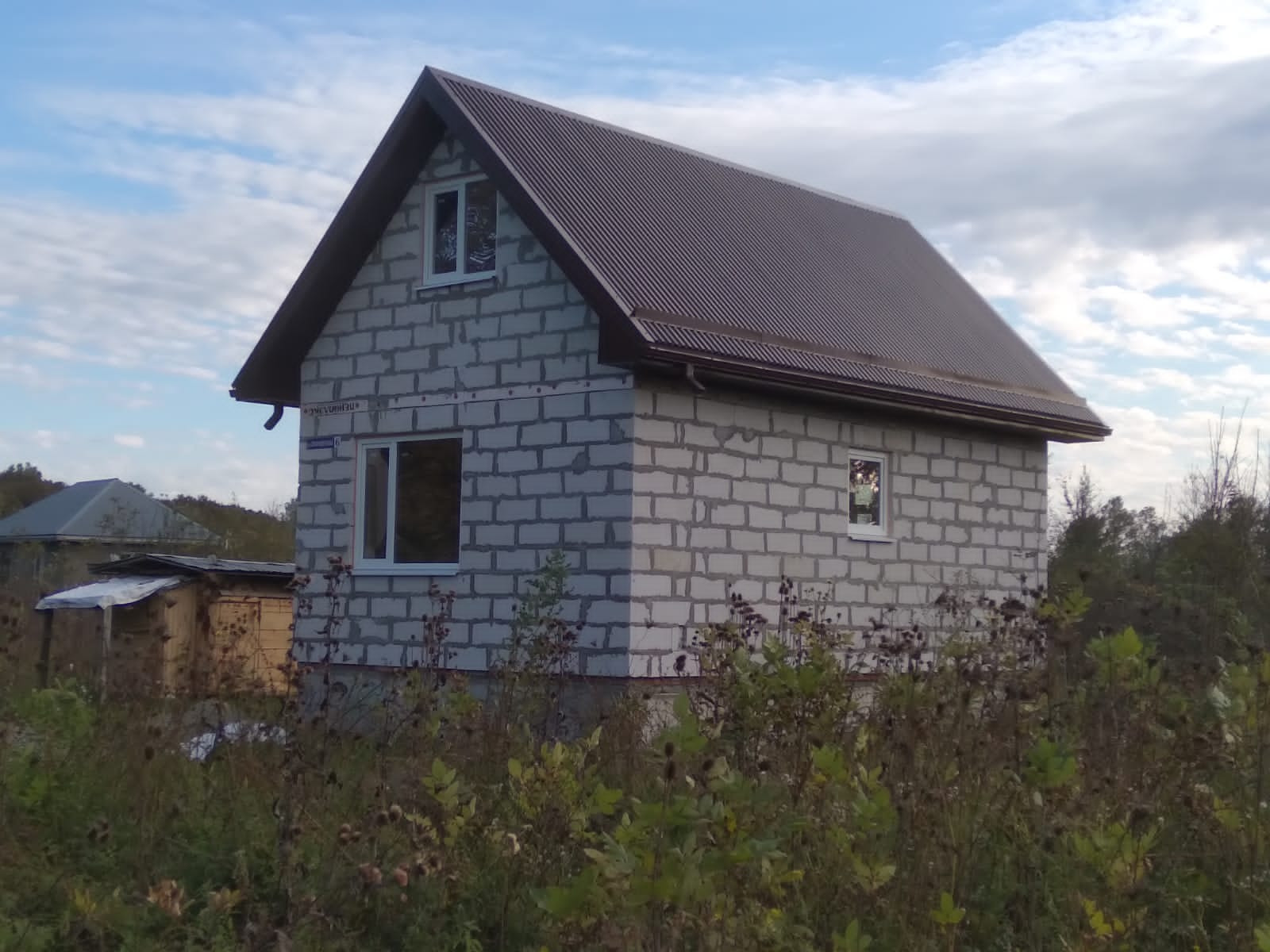Код 171. Продается небольшой новый дом с мансардой в ст  Саратовской 2021 года постройки. Коробка Стены- газобетон (30 см), МПО.  Свободная планировка.  Дом без отделки.Электричество.Скважина в перспективе. Газ в 300 м Поданы документы на подключение.    Дом и земля в собственности. Есть возможность использования мансарды, тем самым расширить площадь и сделать 2-й этаж жилым ( фундамент позволяет). Имеется разрешение на постройку гаража и навеса. Дорога отсыпана гравием. Рядом остановка общественного транспорта