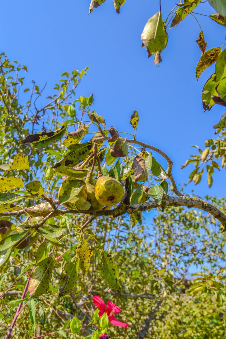 На участке плодовые деревья.