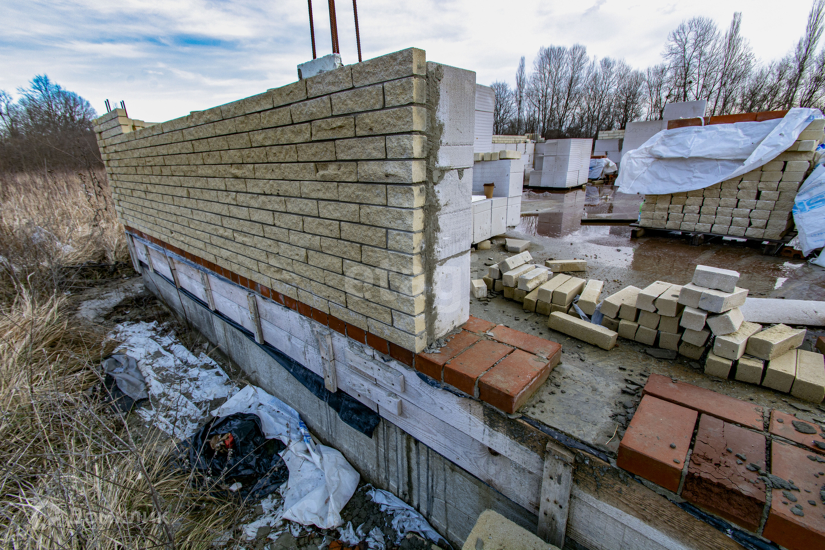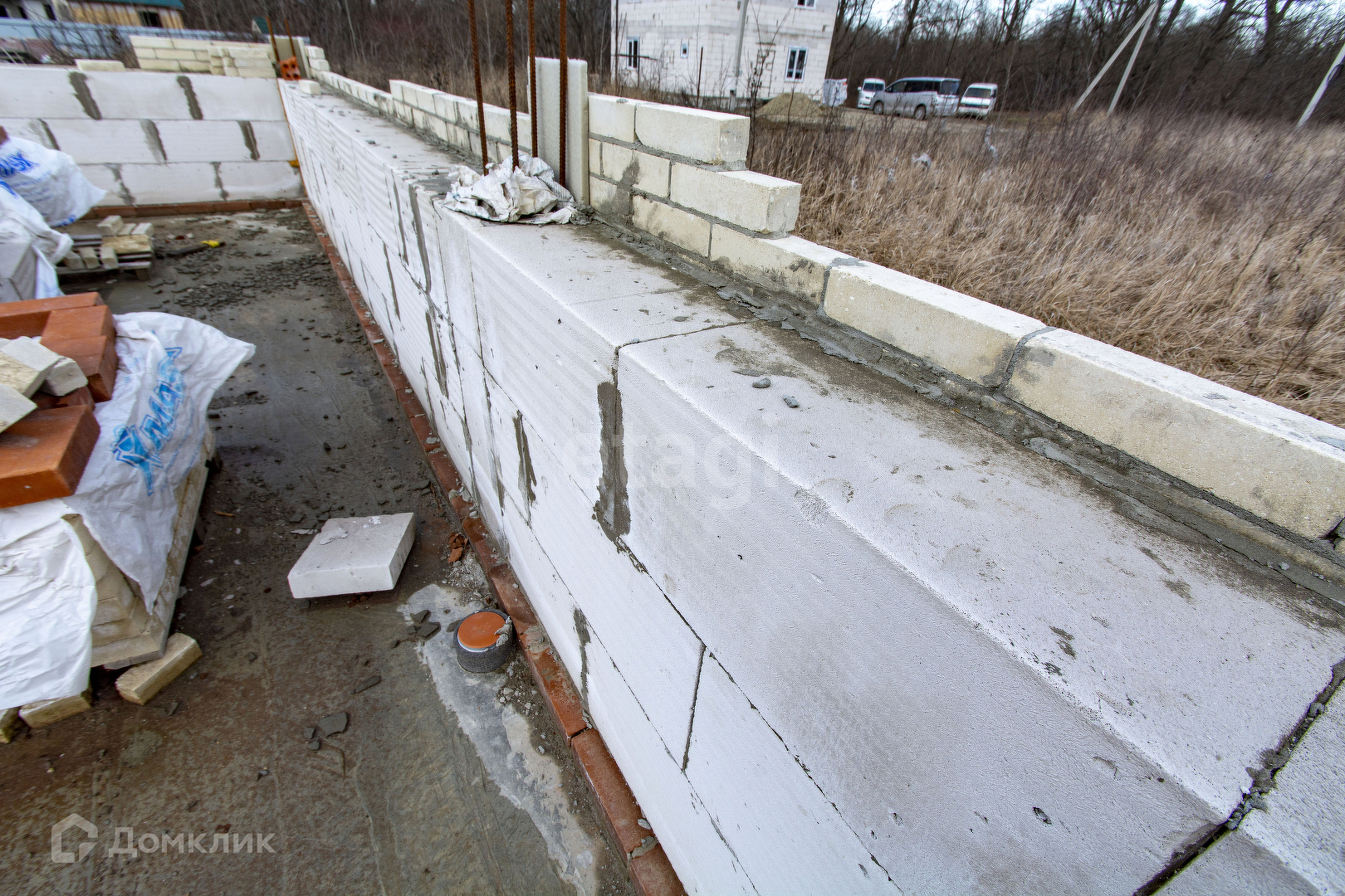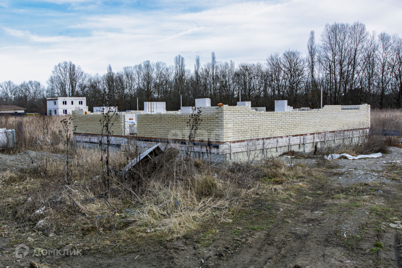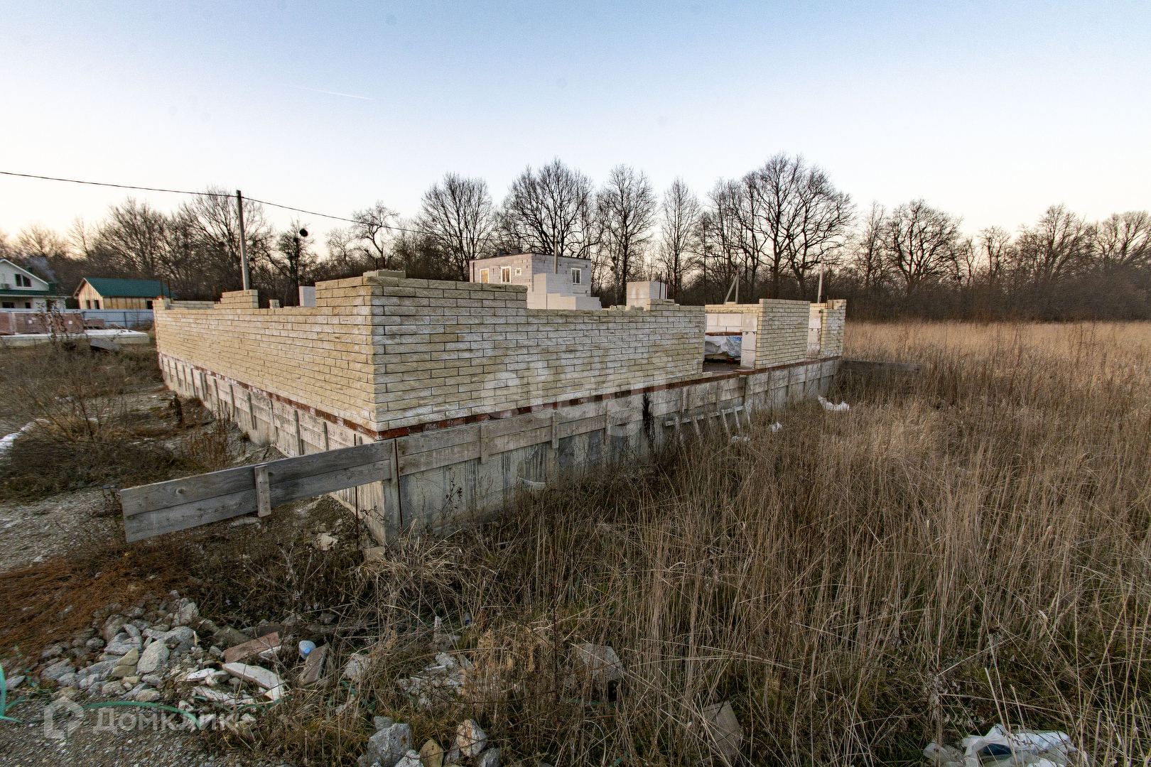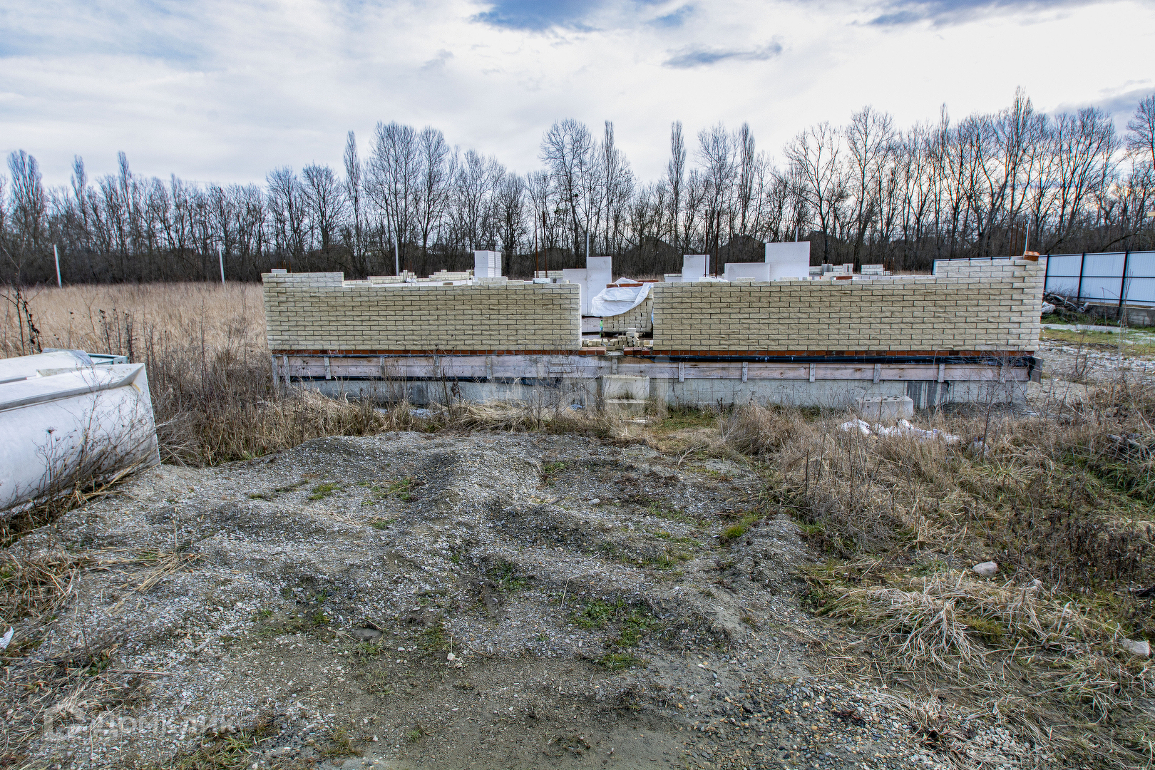 Продажа недостроенного дома, расположенного в 3-х км от Горячего Ключа в сторону станицы Саратовской. Есть готовый проект дома, разрешение на строительство получено. Устроен фундамент размером 8 на 10 метров, с большой террасой. Выкопан в землю на глубину 1 метр, основание отсыпано щебнем на 15 см., бетонная часть армирована железной арматурой, наземная часть фундамента 65 см (армированная железной арматурой), бетонная плита высотой 20 см. Стены частично возведены: материал стен - газоблок, облицовка - кирпич (объем достаточный на весь дом). Есть необходимый объем доски для сооружения стропильной системы. Вместе с участком продается ЛОС (самоочищающийся септик - не требует откачки). Пробурена скважина с питьевой водой.