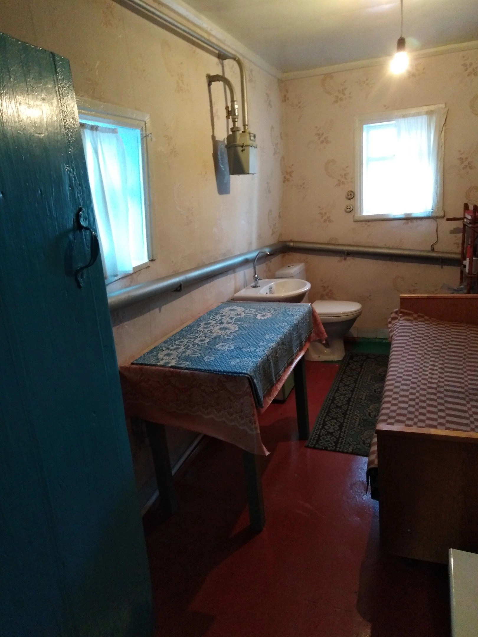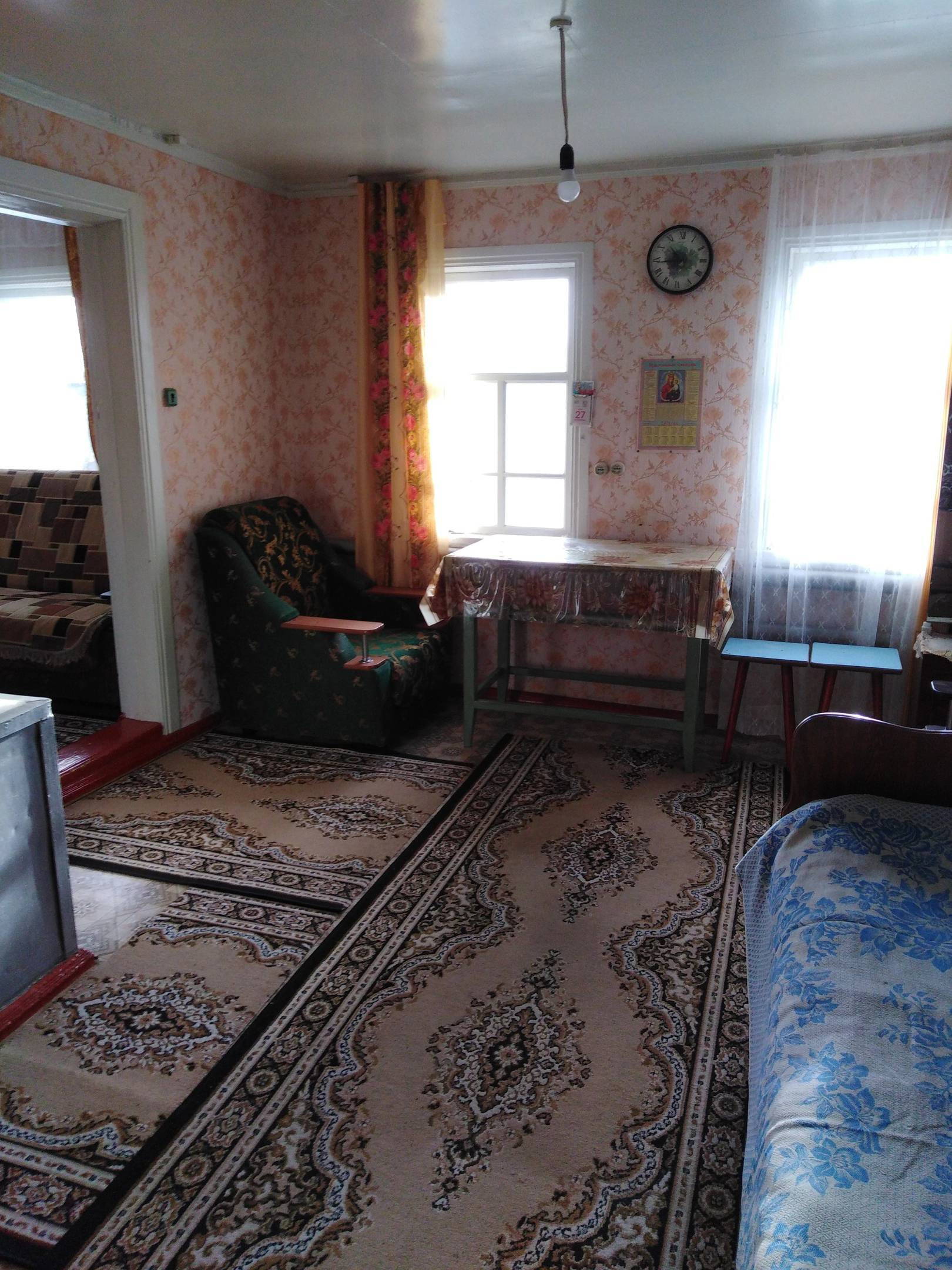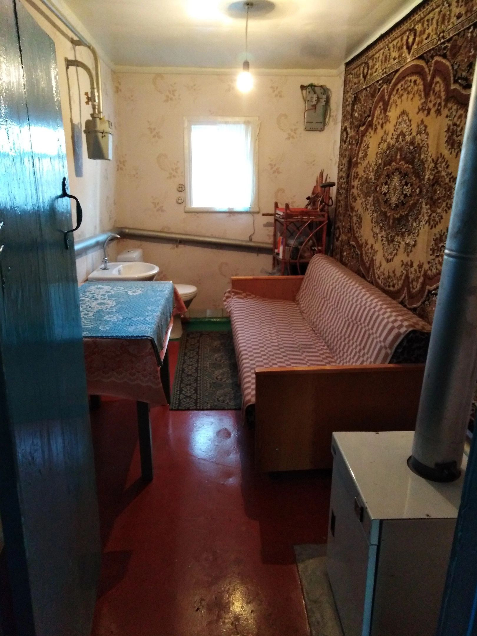 В доме газ, вода, туалет. ваная в кухне. Нужен небольшой косметический ремонт. Есть хоз., постройки погреб.