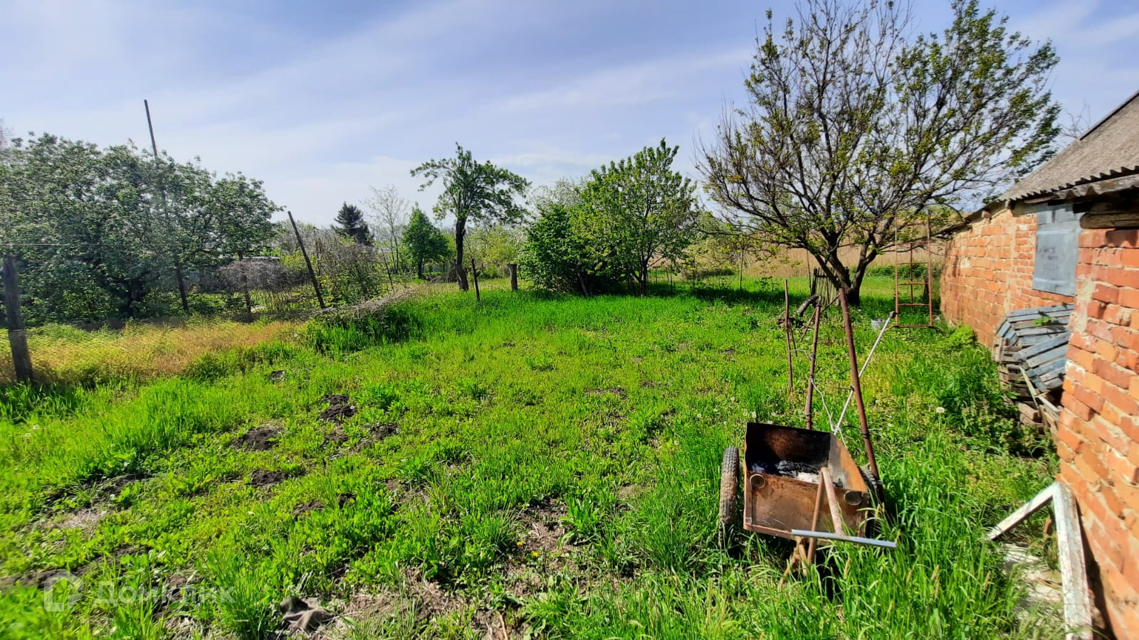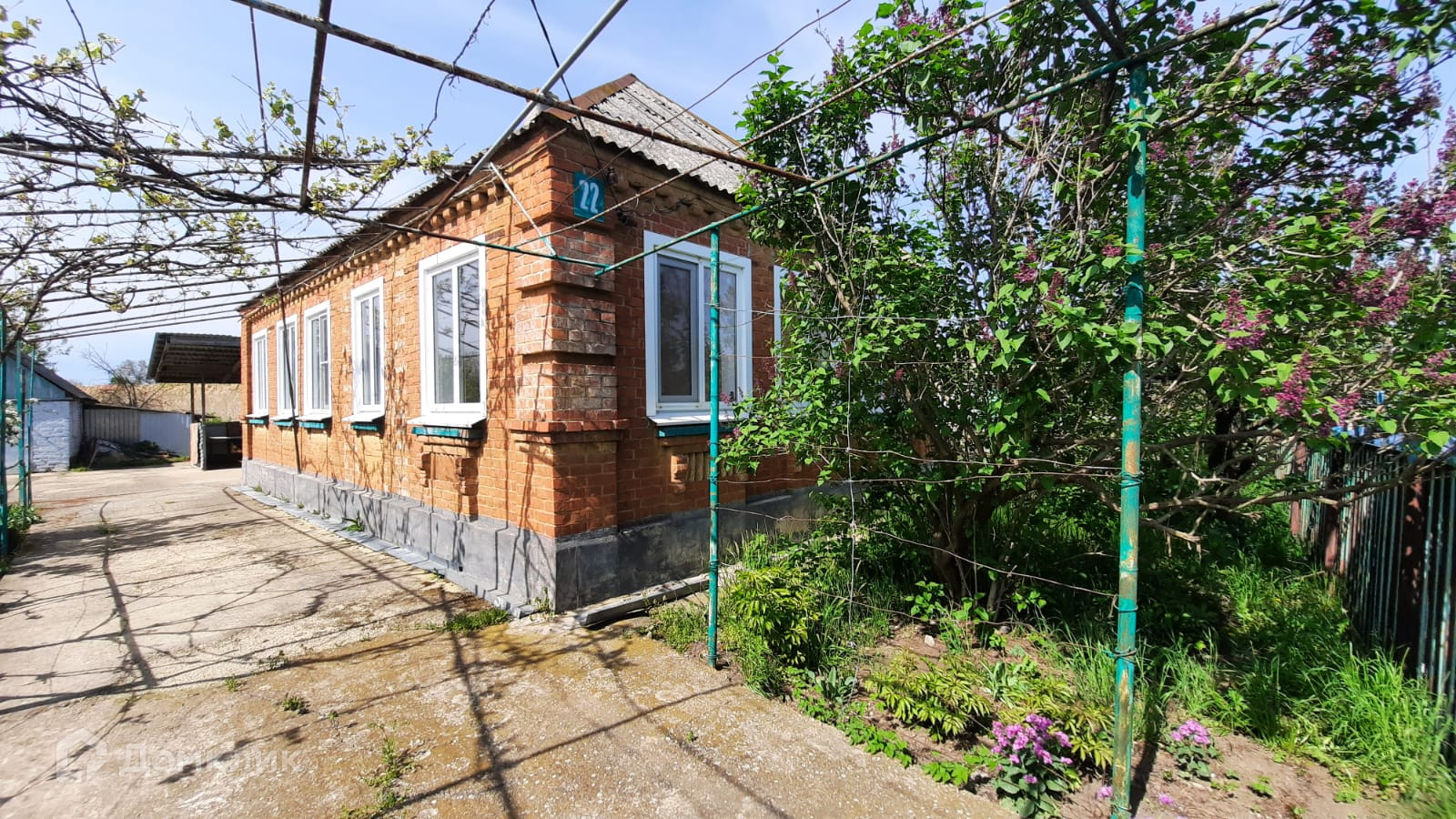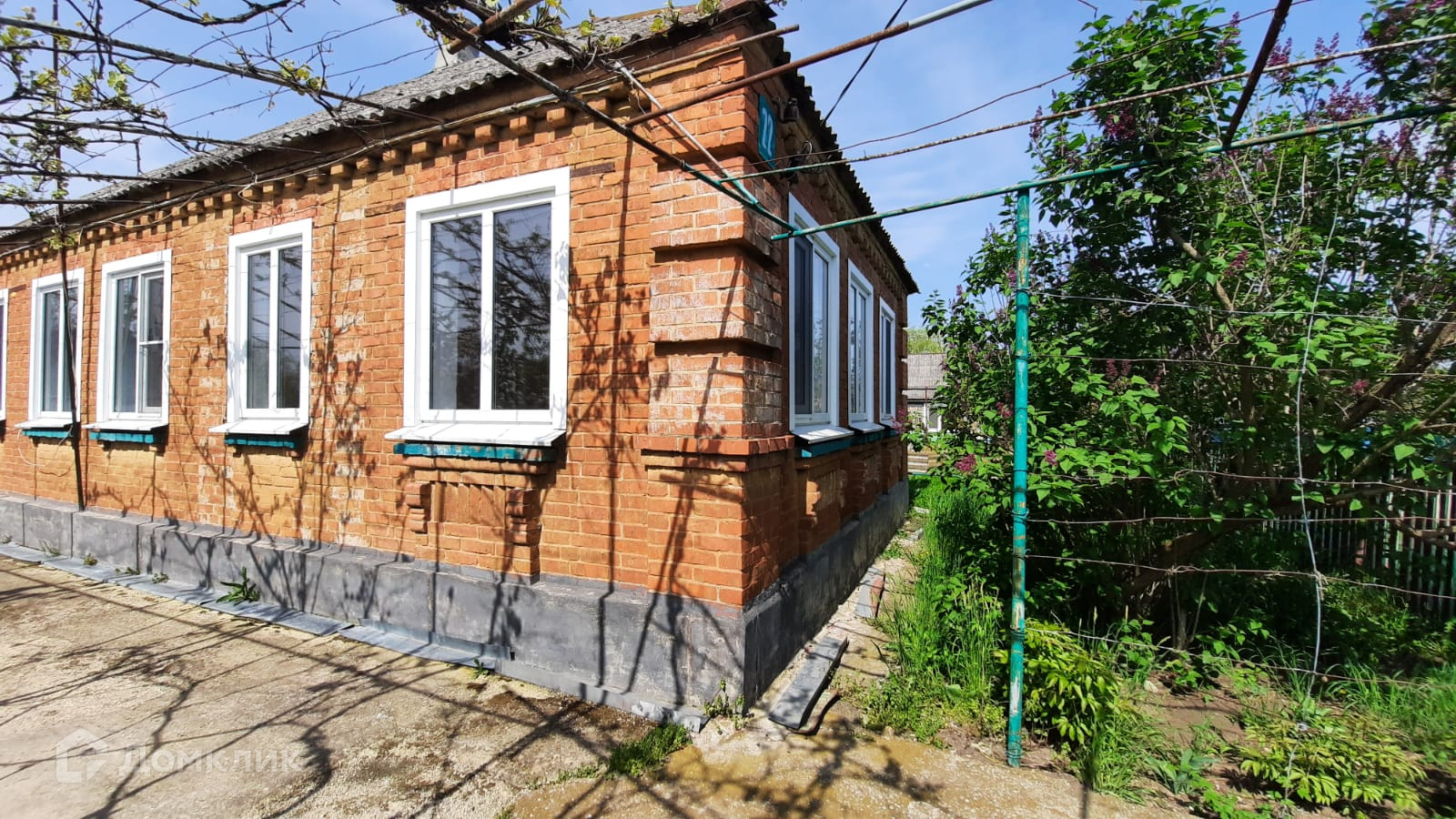 Земельный участок площадью 16.3 соток с выходом к речке и расположенный на нем кирпичный дом площадью 54.5 кв.м.  в доме 3 комнаты, кухня и сан.узел. На участке имеются летняя кухня и гараж.