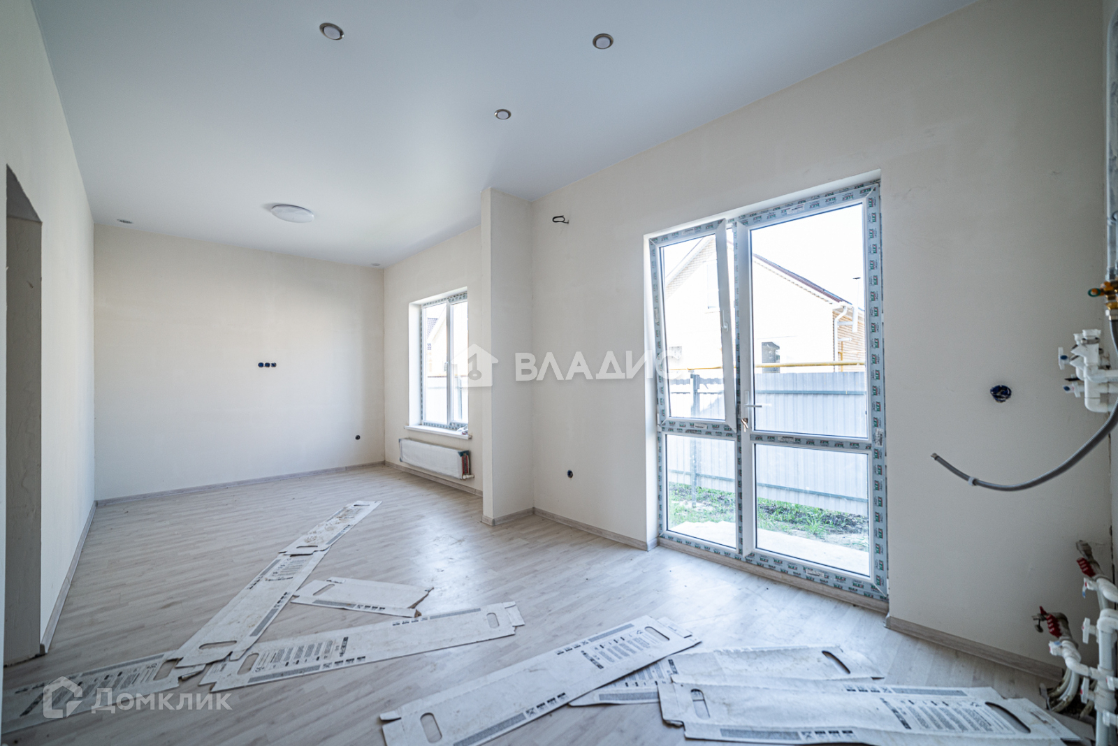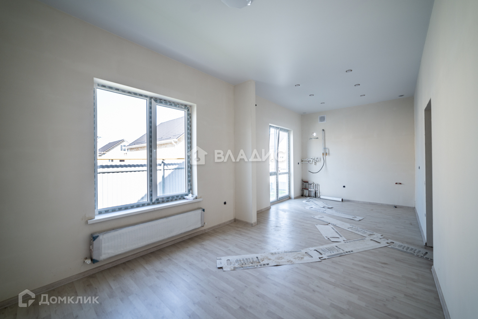 - в доме теплые полы. В кухне , коридоре и сан узлах - кафель, в остальных комнатах - ламинат, стены готовы к покраске или к поклейке обоев, потолки натяжные, светильники установлены, высота потолков 3 метра.