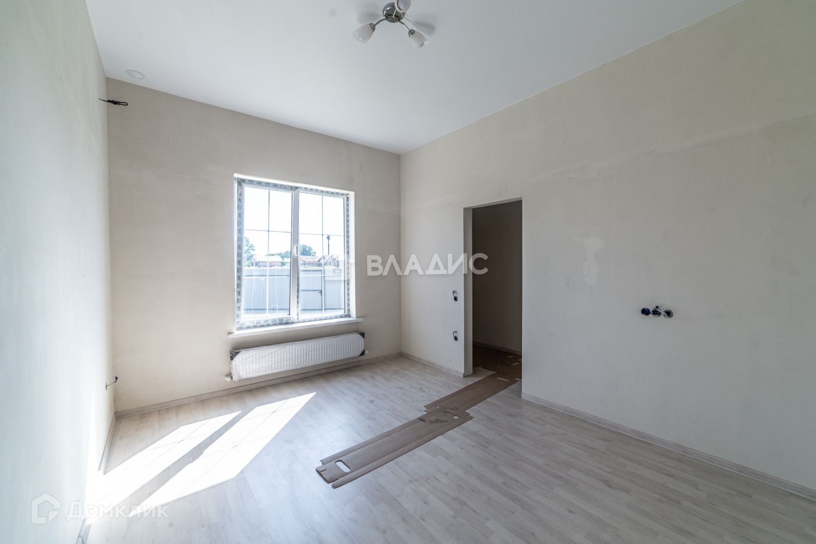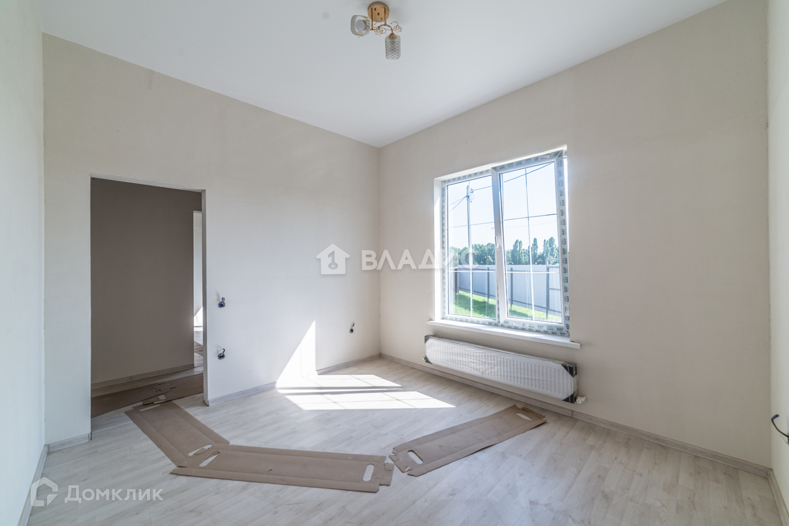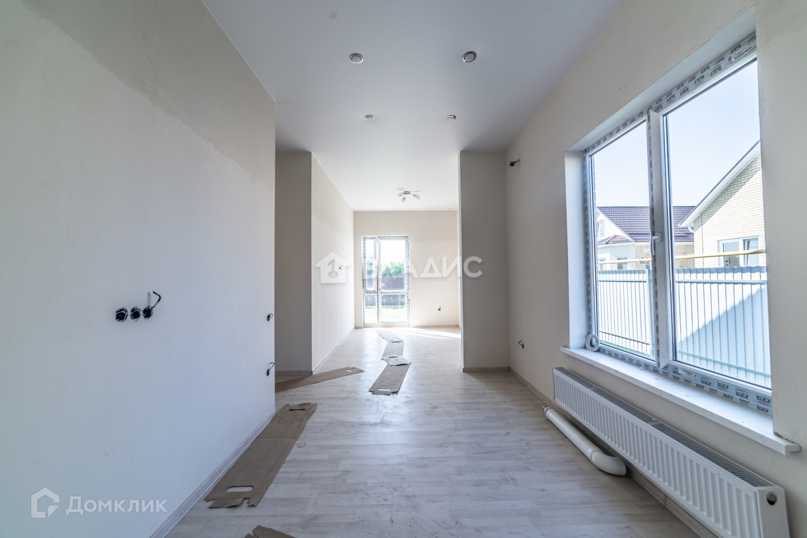 - в доме теплые полы. В кухне , коридоре и сан узлах - кафель, в остальных комнатах - ламинат, стены готовы к покраске или к поклейке обоев, потолки натяжные, светильники установлены, высота потолков 3 метра;