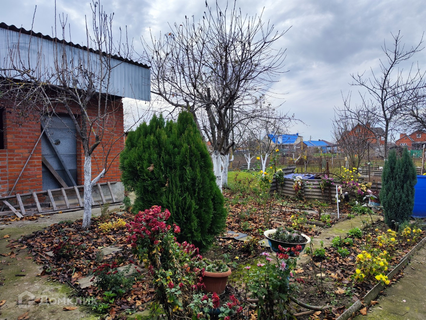 Выстроен большой кирпичный гараж. Есть смотровая яма.