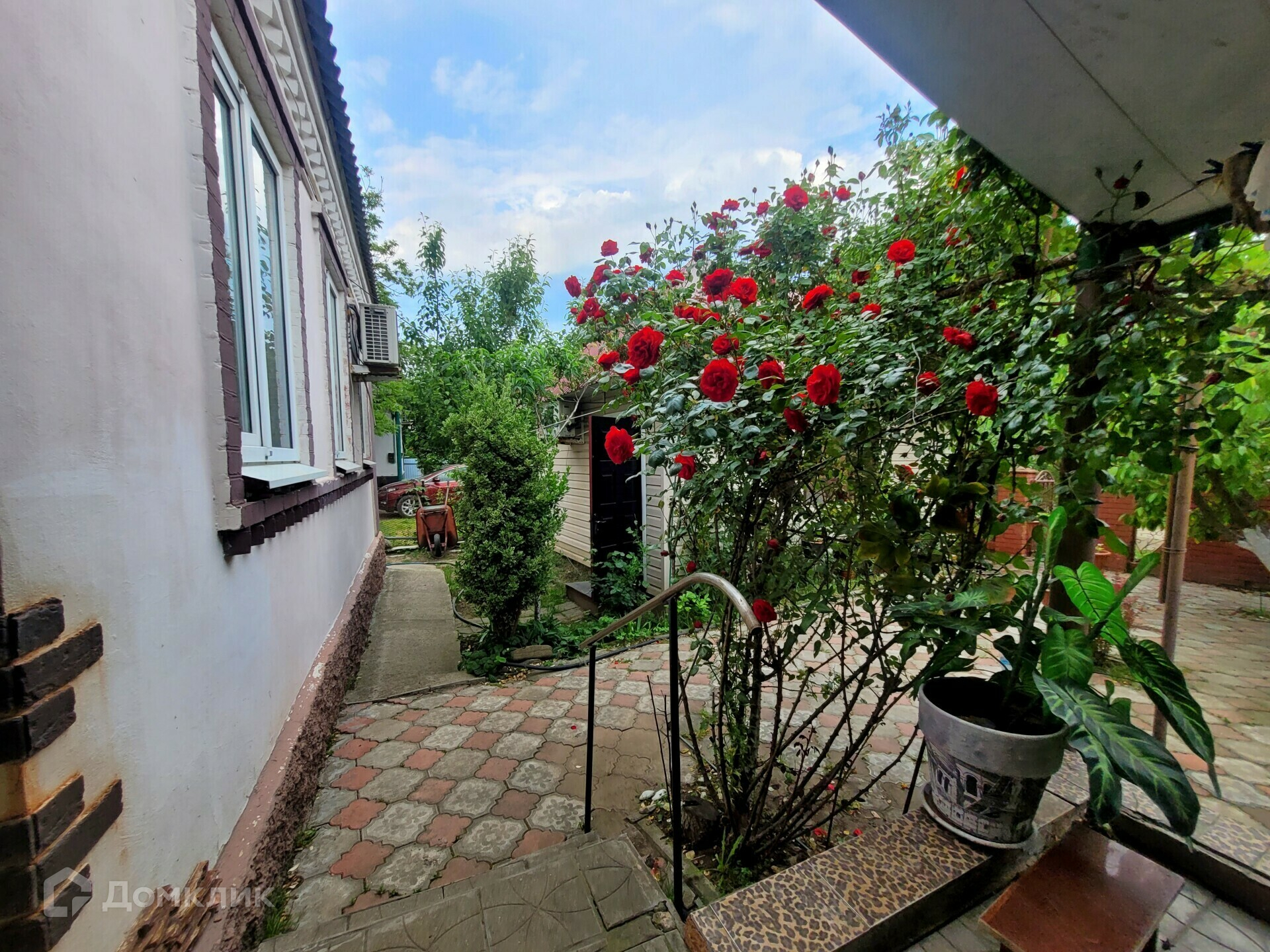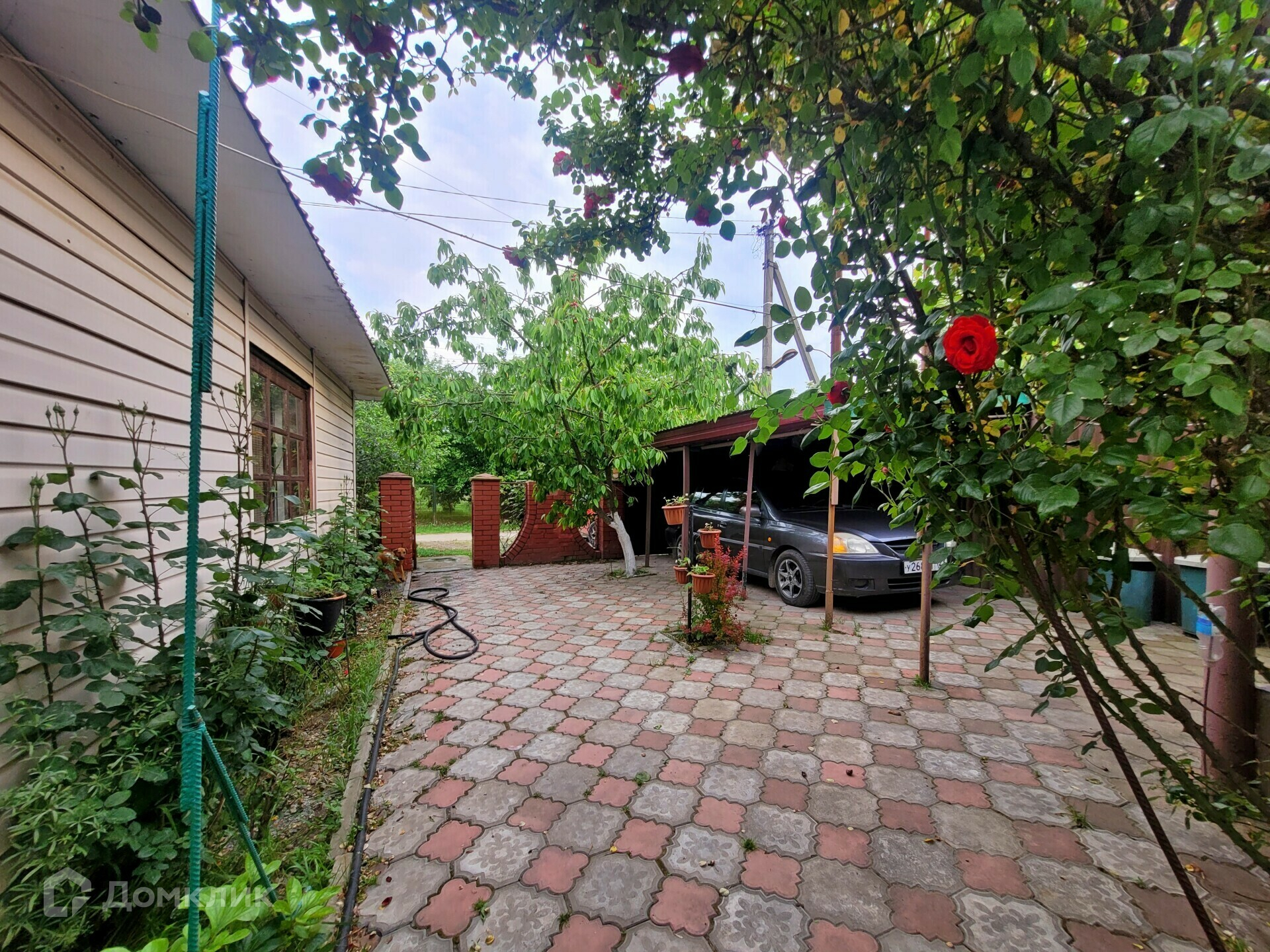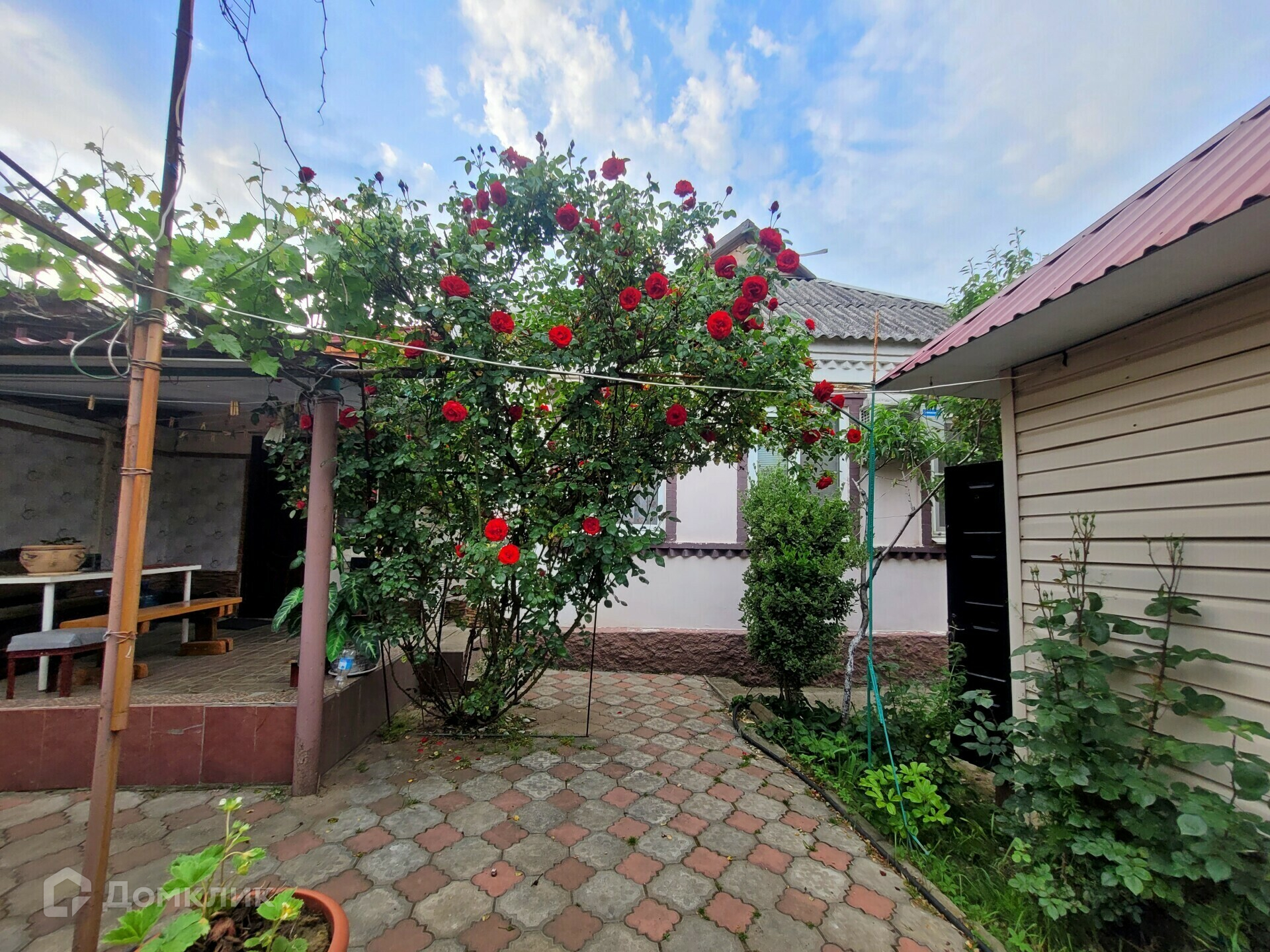 Двор уложен плиткой, есть капитальные навес для любой непогоды, небольшая крытая терраса.