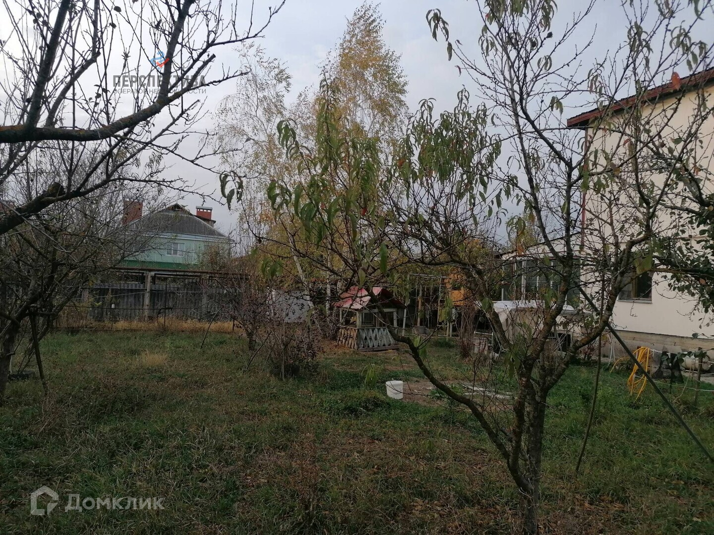Сухой ровный участок ( практически 11 соток) с широким фасадом с посаженными фруктовыми деревьями. Во дворе для детей сделана небольшая детская площадка.