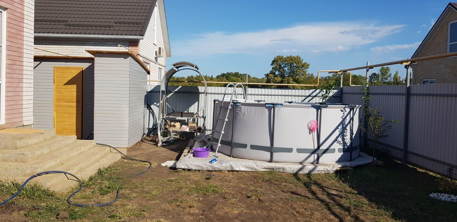 Хозяйственные постройки, есть каркасный бассейн и детская площадка, мангальная зона , которые остаются новым хозяевам.