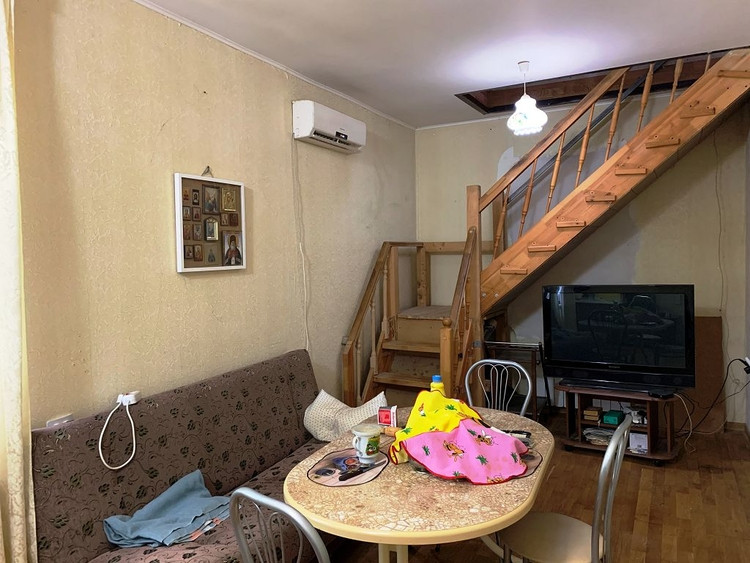 В доме на 1 этаже : прихожая 14 кв м, кухня - гостиная ( состоит из двух зон - кухни и гостиной, 29 кв м ), просторный зал 33 кв м, сан. узел.