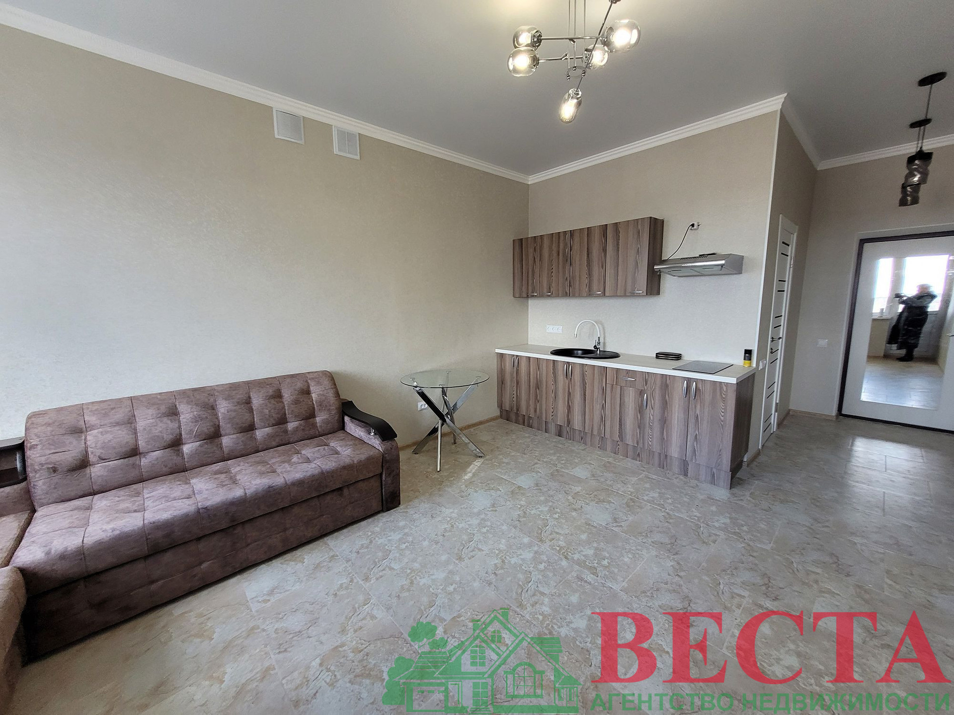 Квартира-студия площадью 25 кв.м. на 3-м этаже 3-х этажного кирпичного нового дома в ремонте и с мебелью.Вид с балкона чудесный,вся станица как на ладони.Дом новый ,в квартире никто не жил.Нулячая в новом современном ремонте,чистота красота.Заходи и живи.Придомовая территория ухожена в плитке,есть детская площадка.