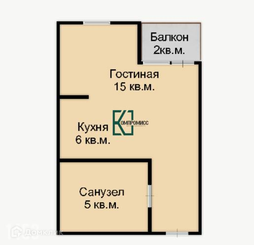 Общая площадь квартиры 26 кв. м.