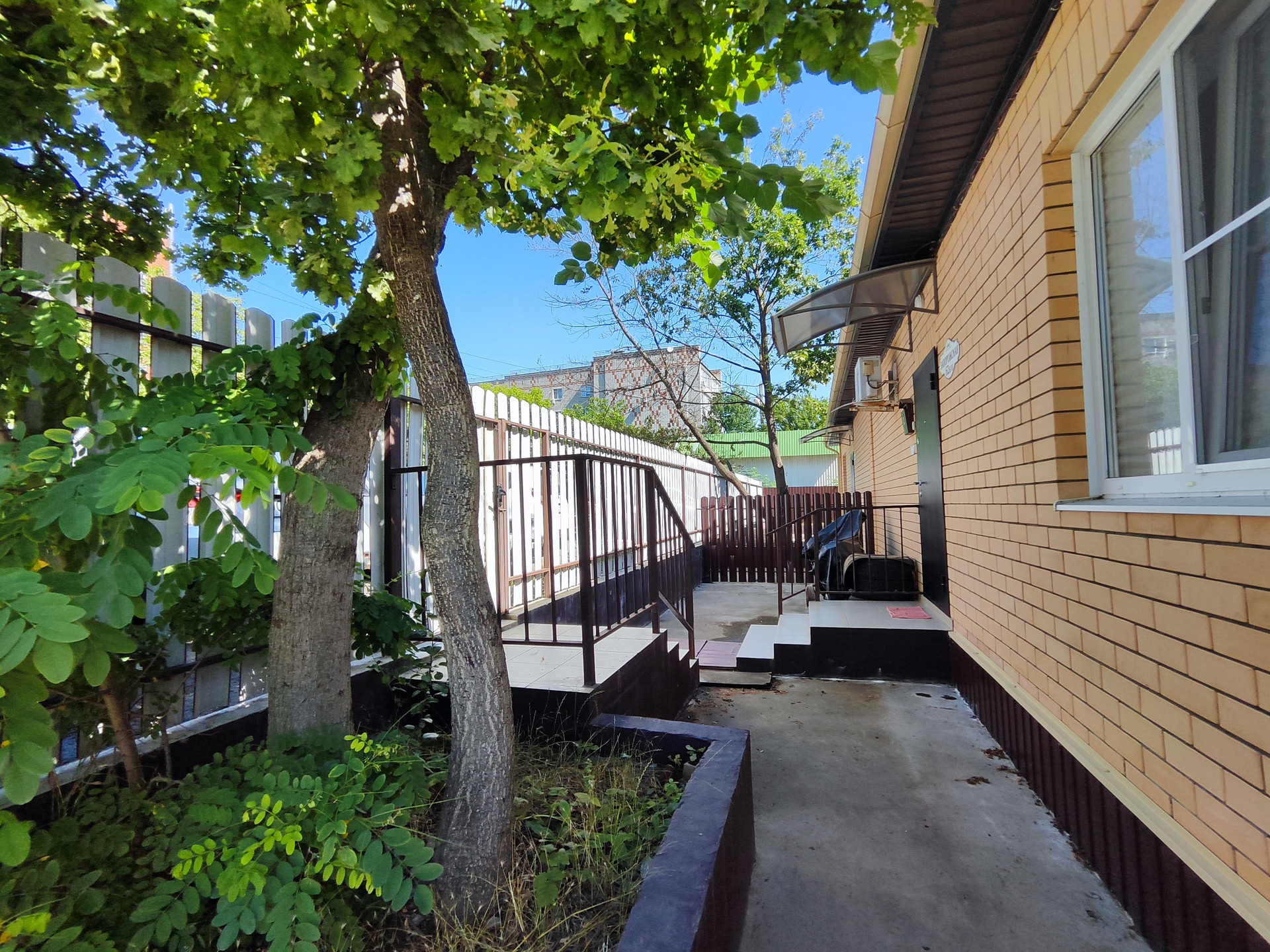 Квартира на земле, отдельный вход, небольшой огороженный участок.