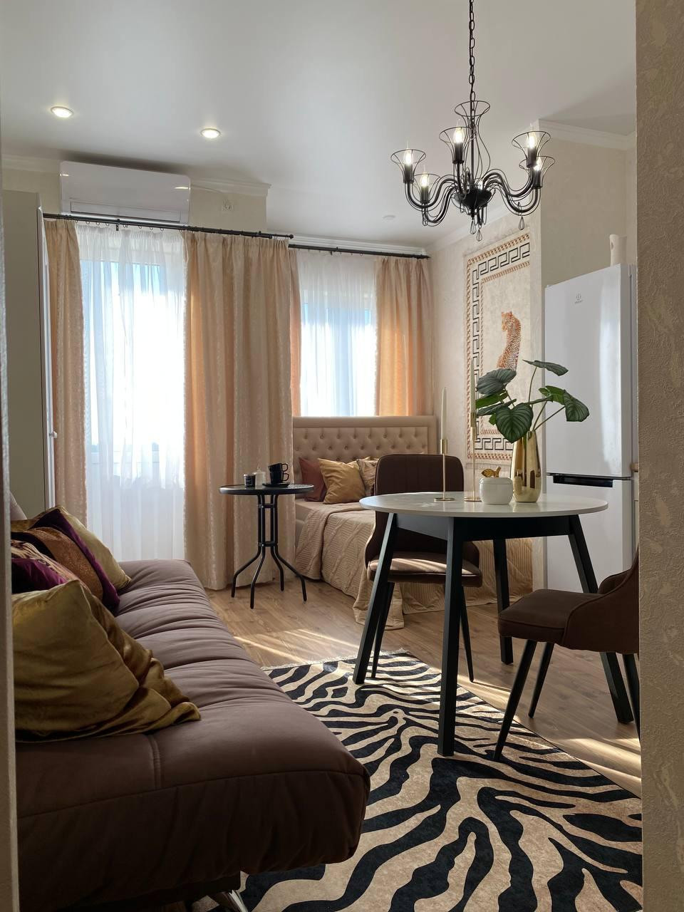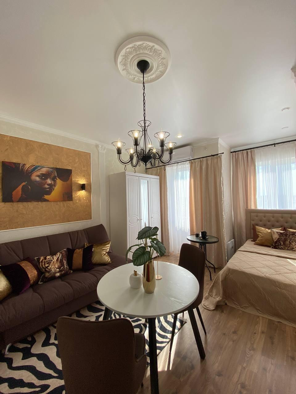 Студия с хорошим ремонтом и мебелью.